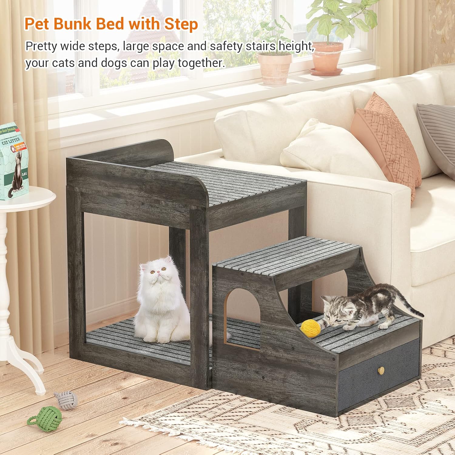 • ๐Ÿพ Large Space with a Storage Drawer - The space underneath the bed is large too, so your dogs and cats can play together. The top bed space is 17.72*17.72 inches, providing a safe and large space to lie down and rest. It can hold up to 150 lbs. The drawer underneath the stair is large too, you can install your pet's toys and food too.