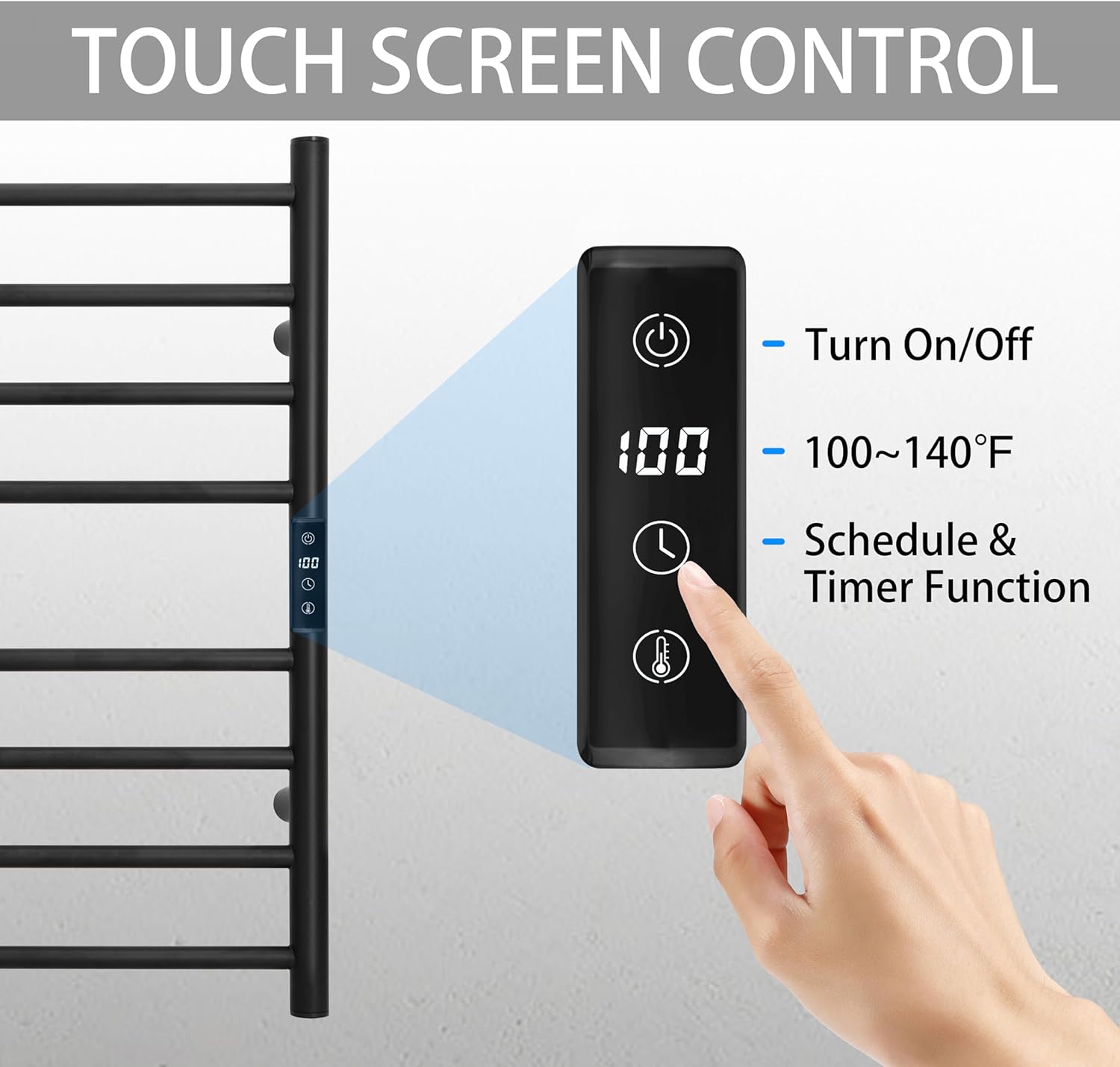 • [PREMIUM QUALITY WITH ELEGANT LOOK]: The bath towel warmer is made of durable 304 stainless steel, easy to clean and durable use. IP56 Waterproof standard and wall-mounted design maximizes your floor space.