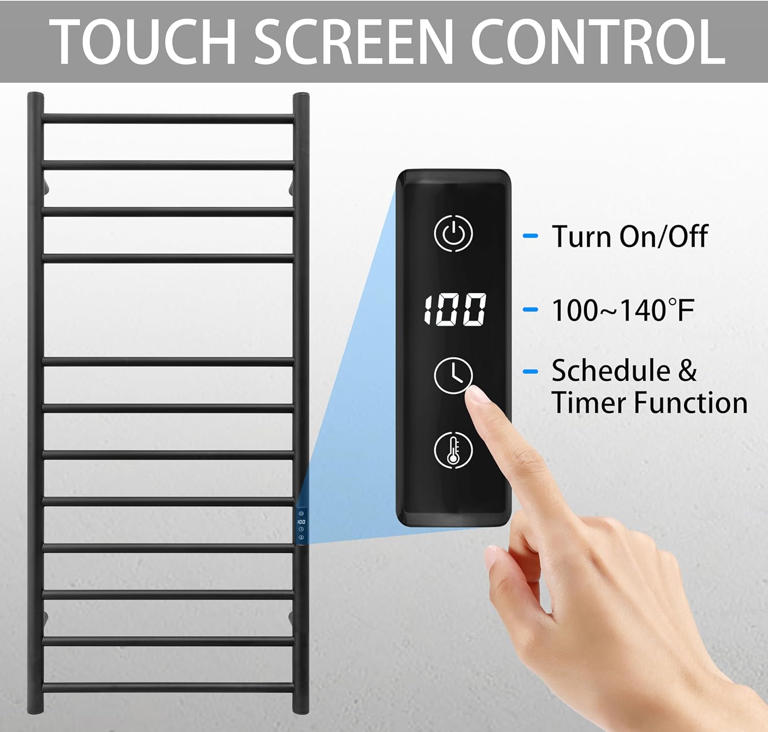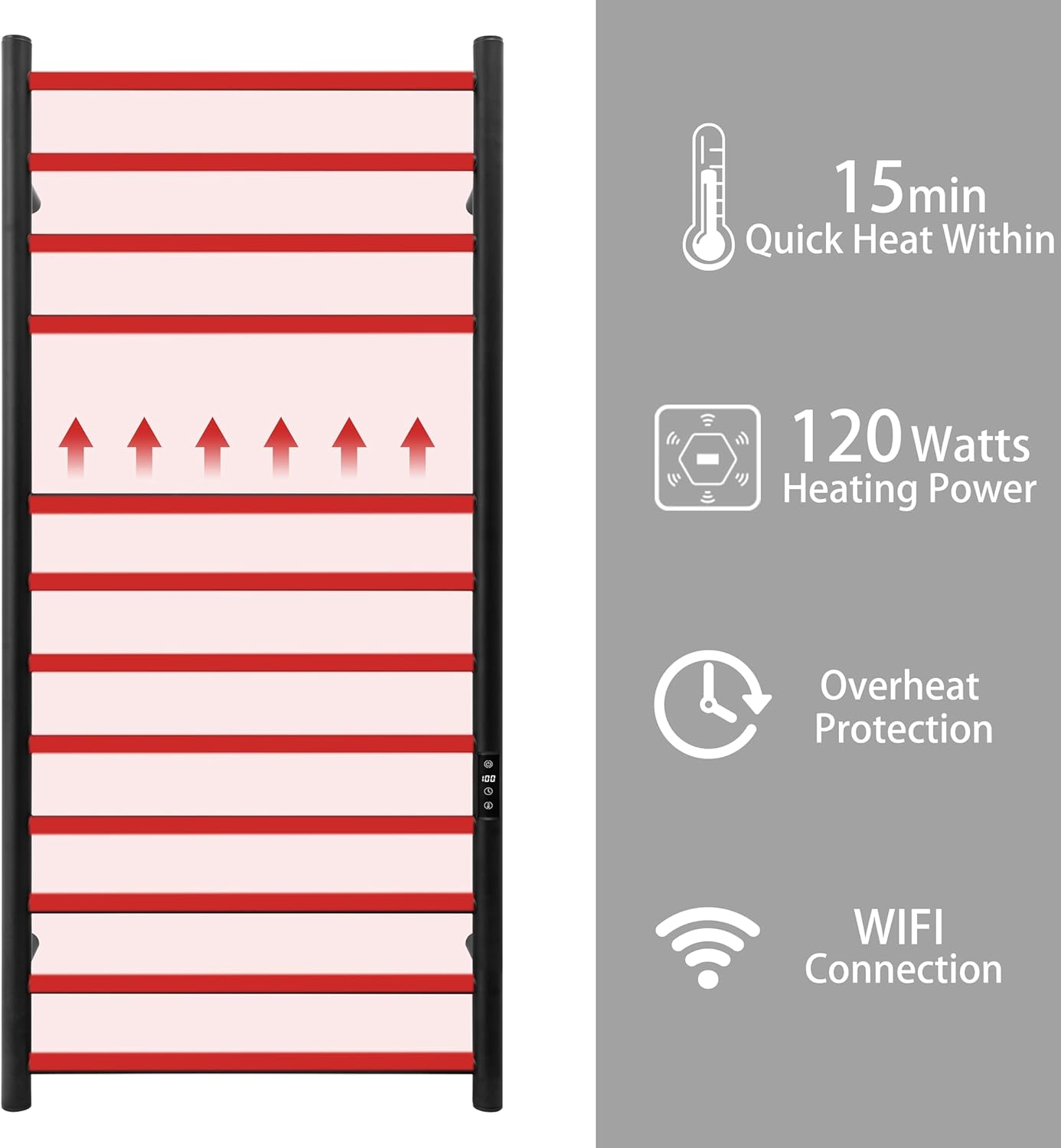 KEG Smart WiFi Towel Warmer Wall Mounted with Built-in Timer and Temperature Adjust Control, 12 Bars Electric Stainless Steel Heated Towel Racks for Bathroom Black