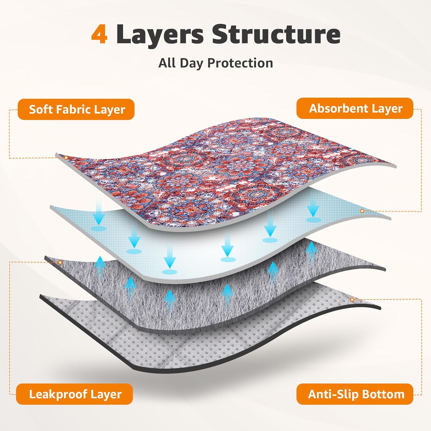 LOOBANI Washable Pee Pads for Dogs, 2 Pack Super Absorbent Reusable Puppy Pads Leakproof Dog Traning Pads, Waterproof Non-Slip Whelping Pad for Floor, Playpen, Crate, Couch-36 x36 (Red Flower)