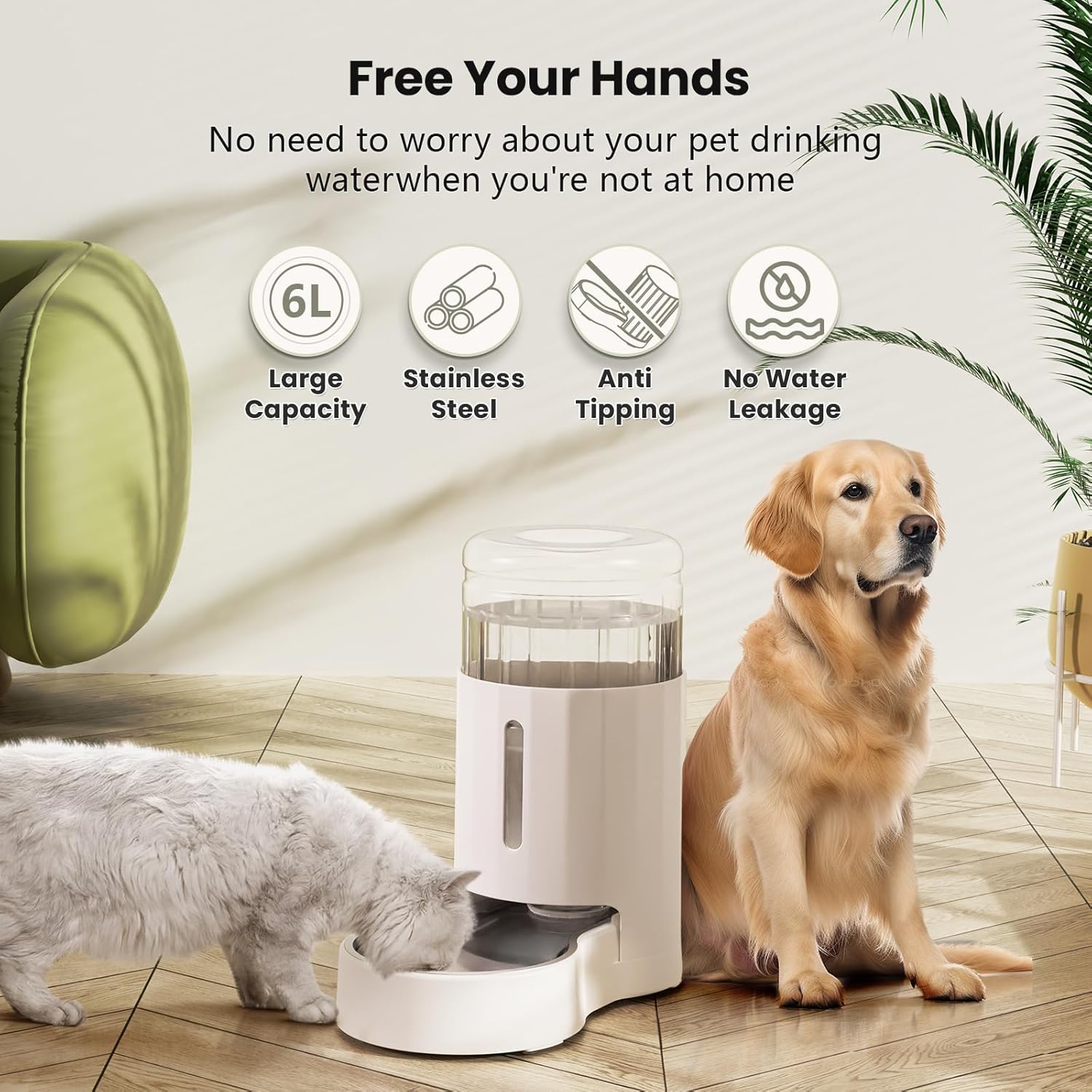 CZPET Automatic 6L Dog and Cat Water Dispenser with Stainless Steel Bowl Gravity Waterer,100% BPA-Free,Large Capacity and Drinking Area Noise-Free for Pets(6L Water Dispenser, White)