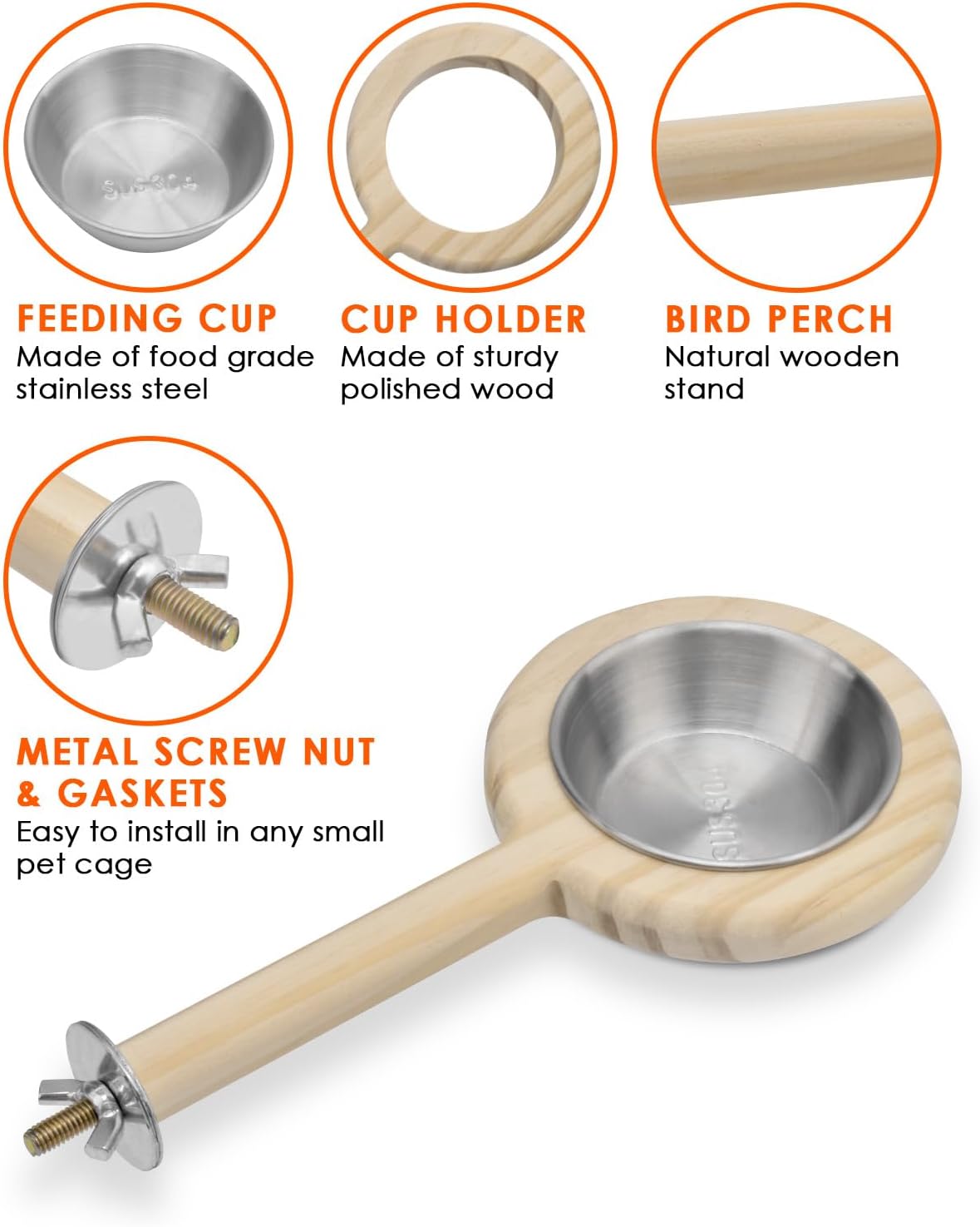 • EASY TO USE: With metal gaskets and nut, the perch can be installed in all pet cage. Sturdy and stable for small birds to sit on the middle or the rim while enjoying food dish