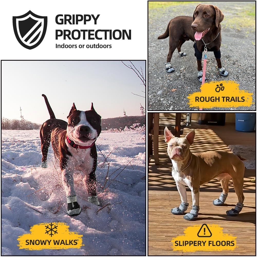 Dog Shoes for Large Dogs, Medium Dog Boots & Paw Protectors for Hardwood Floors, Outdoor Dog Booties for Hot Pavement Winter Snow Hiking, Waterproof Dog Shoes with Reflective Strips Size 3