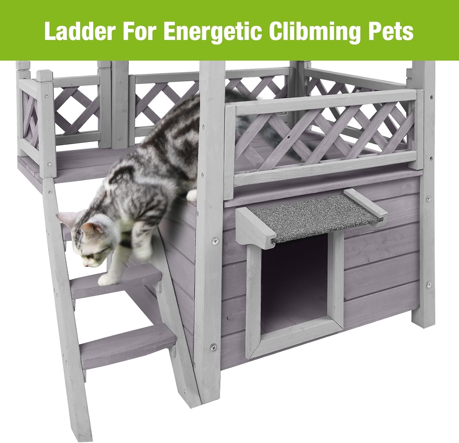 GUTINNEEN Cat House Outdoor Weatheproof Feral Cat Shelter Wooden Cat Condos for Winter Large Balcony(AIR09)