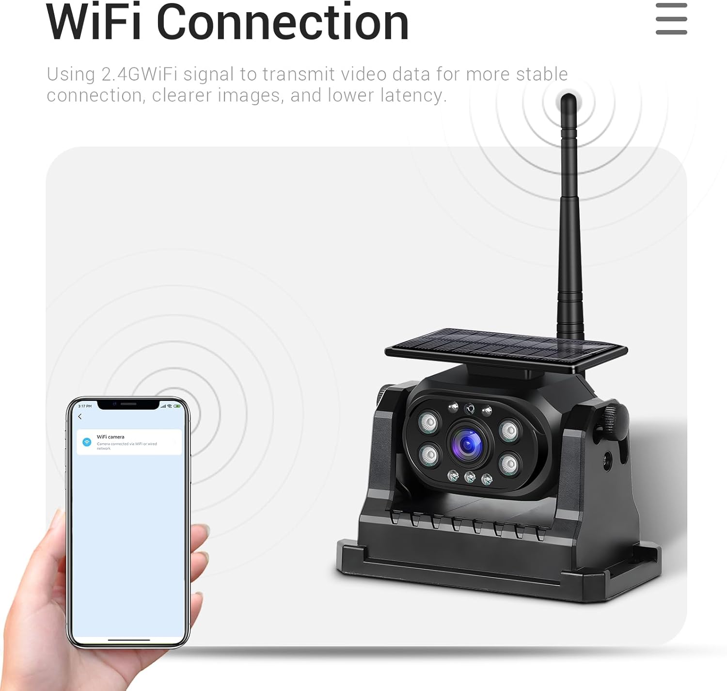 Hikity Wireless Backup Camera Solar Magnetic WiFi, HD 1080P Rechargeable Rear View Camera for Truck/Trailer/RV/Camper, IP68 Waterproof Reverse Camera, Clear Nigh Version, Wide Angle