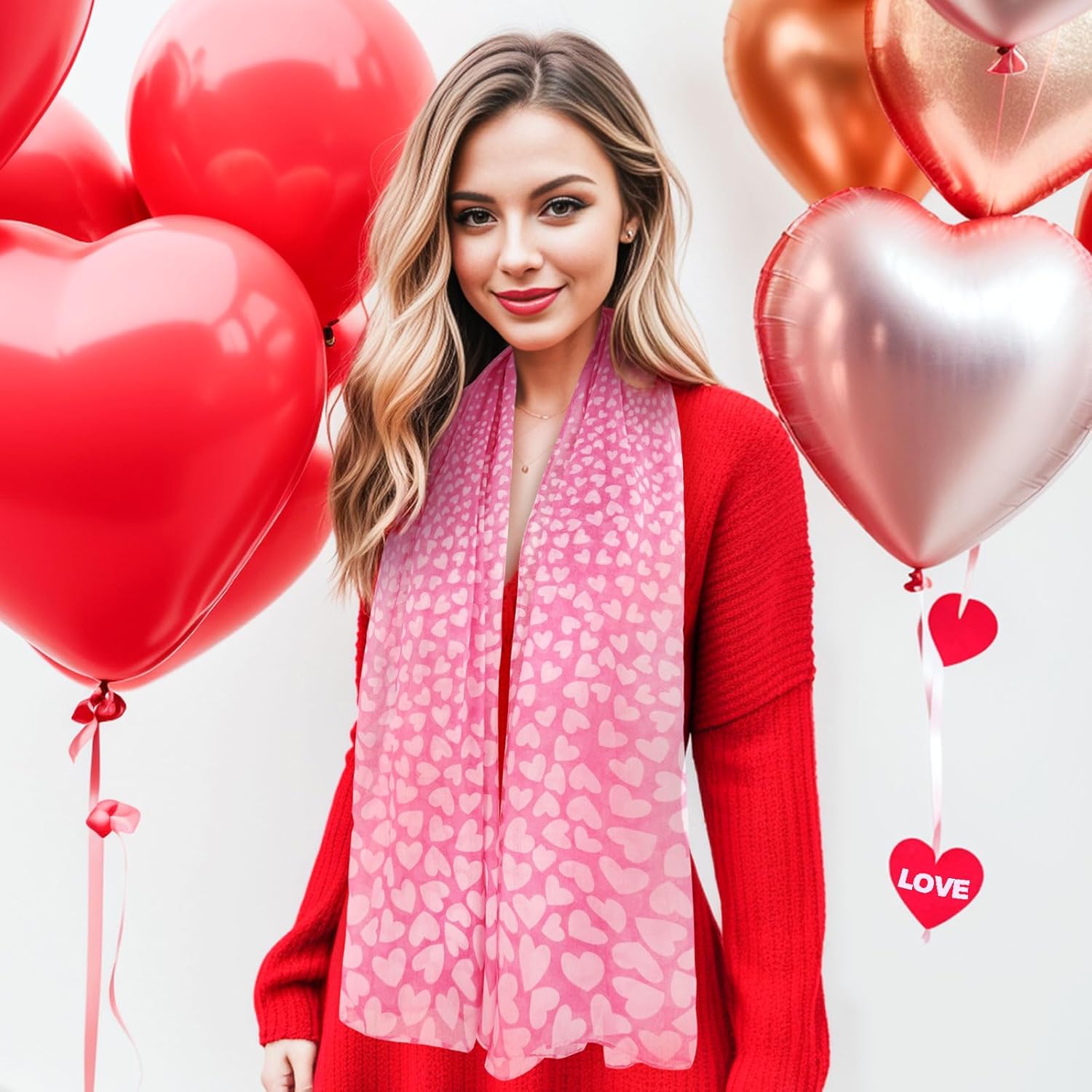 • Size: 180cm*90cm. The long & large pink heart scarf for women can be used as a head scarf, face scarf, neckercheif, belt scarf, headbands, shawls and so on.