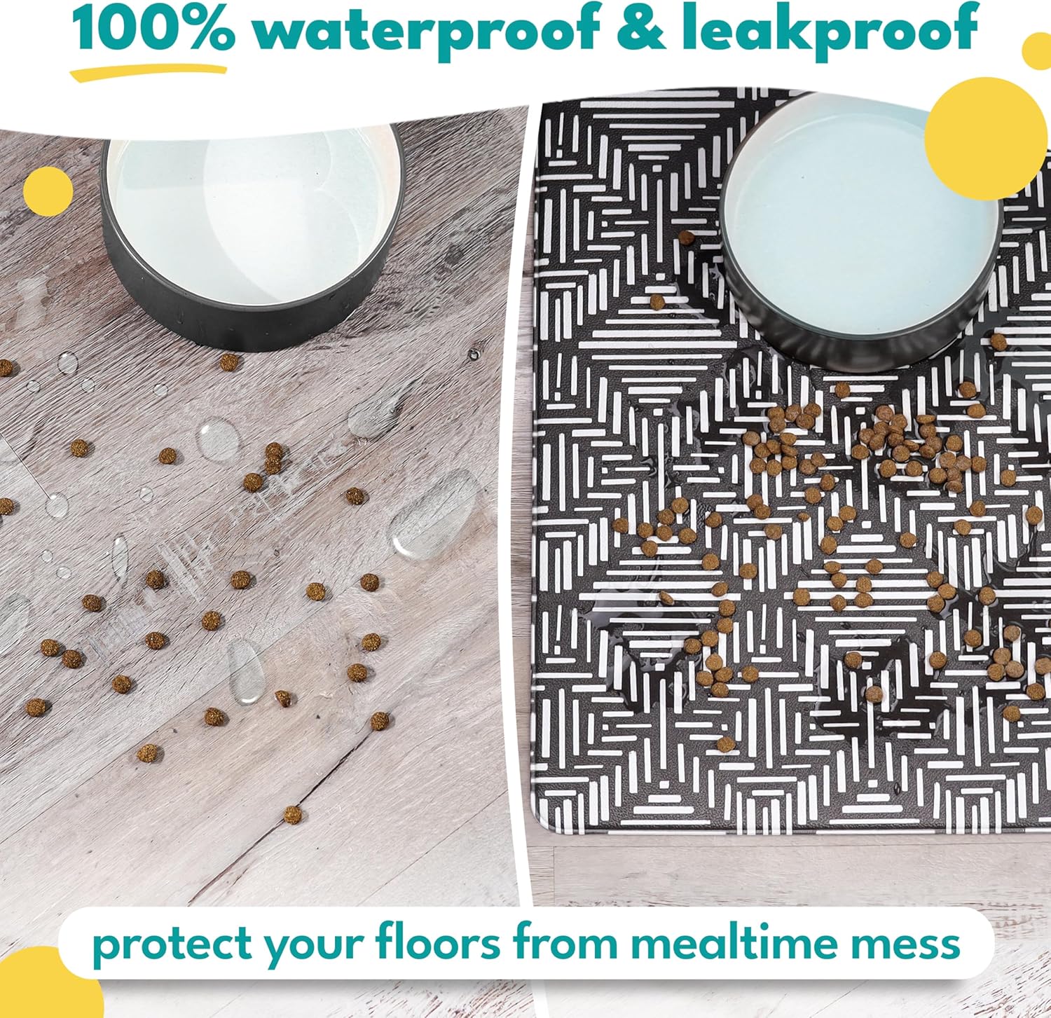 • MADE FOR PETS, DESIGNED FOR YOU – Our stylish dog food mat for bowls and water dishes blends seamlessly into your home décor. Unlike typical pet feeding mats, our non-slip, waterproof dog placemat features modern designs that fit your space, keeping floors clean while looking great.