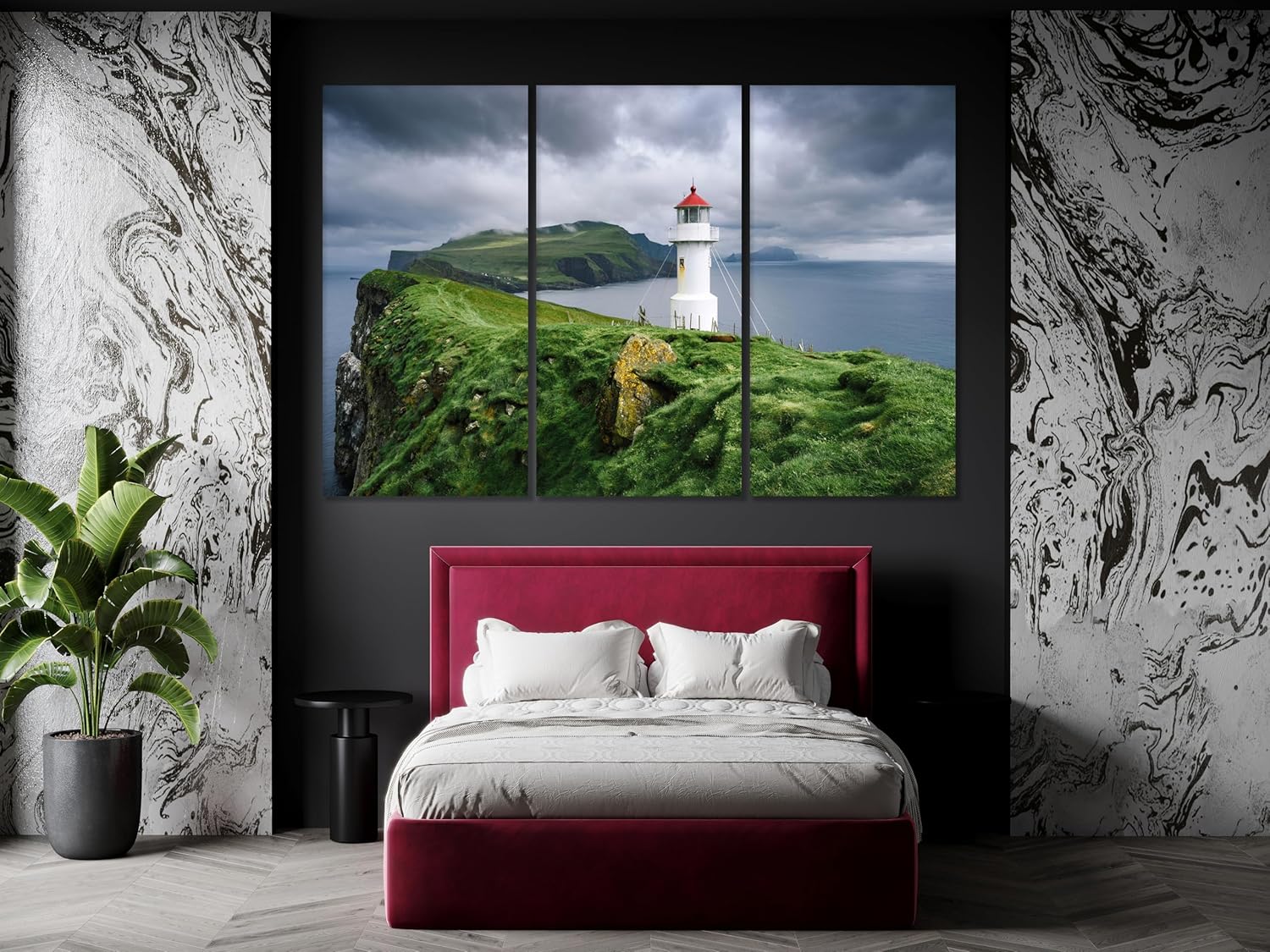 Nature Wall Art Prints - Ocean Forest Mountain Lake Canvas Landscapes - Small to Extra Large Living Room Bedroom Kitchen Bathroom Décor (Stormy Sky Lighthouse, 24L" x 36W")