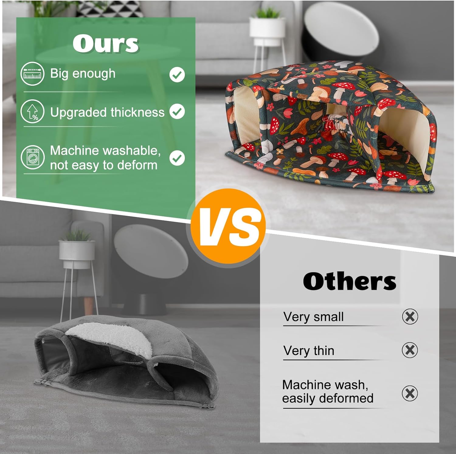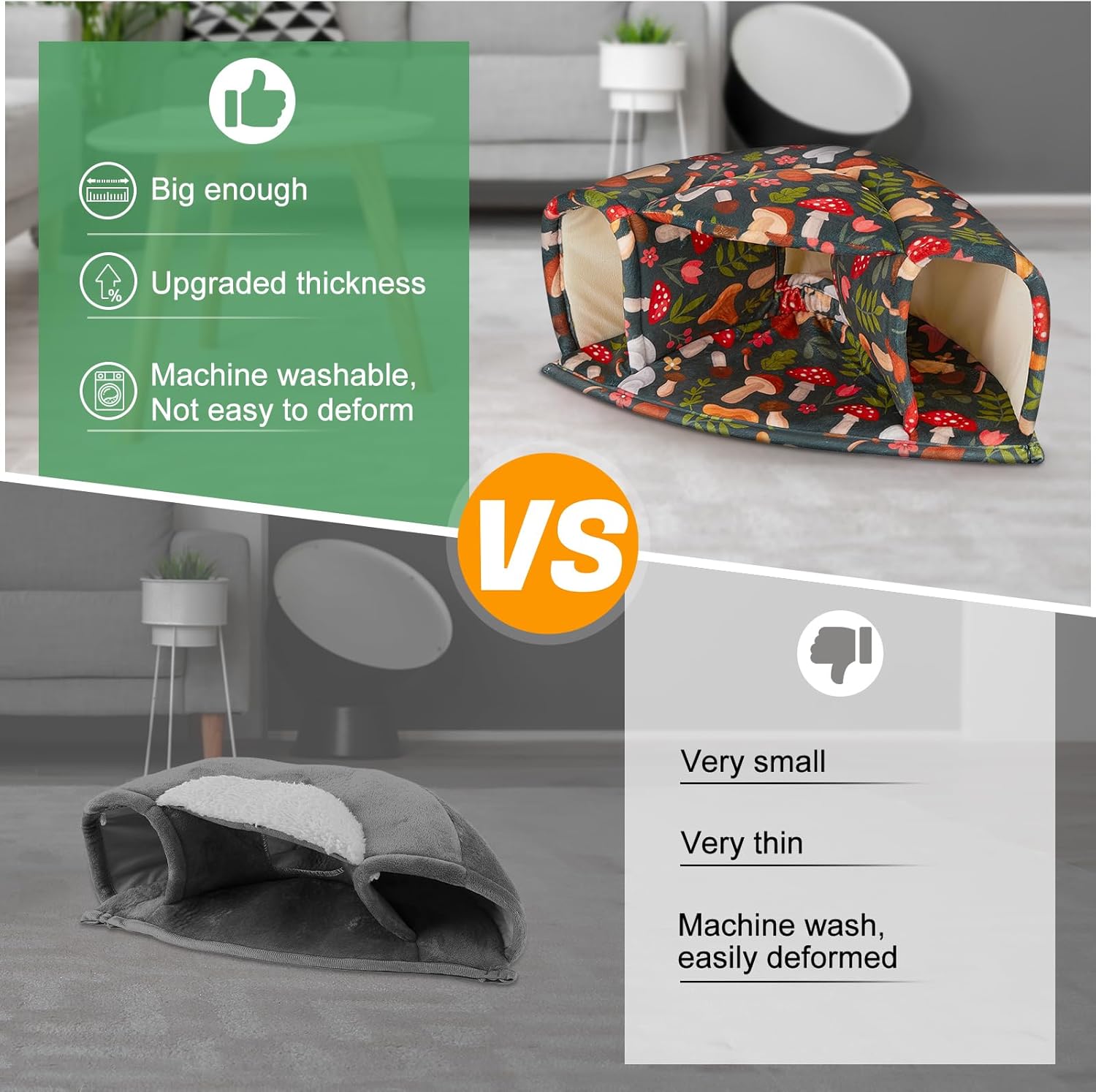 • Machine Washable: The guinea pig hideout is made of short plush and high-density elastic sponge; Not only is it very soft to the touch, but also more comfortable and warm, the fabric is thick enough to hold its shape and stay upright after many washes
