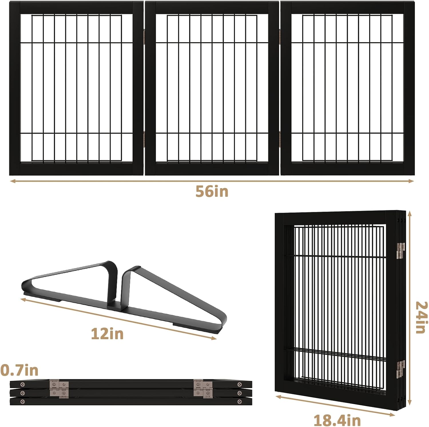 • [Decorative Room Gate] Smooth surfaces, solid-colored modern dog gate indoor, match with your home decor, incorporate into your home decor. suitable size fit most openings: 3 panel dog gate wide 55", 24"tall, 4 panel dog gate wide 74", 24"tall