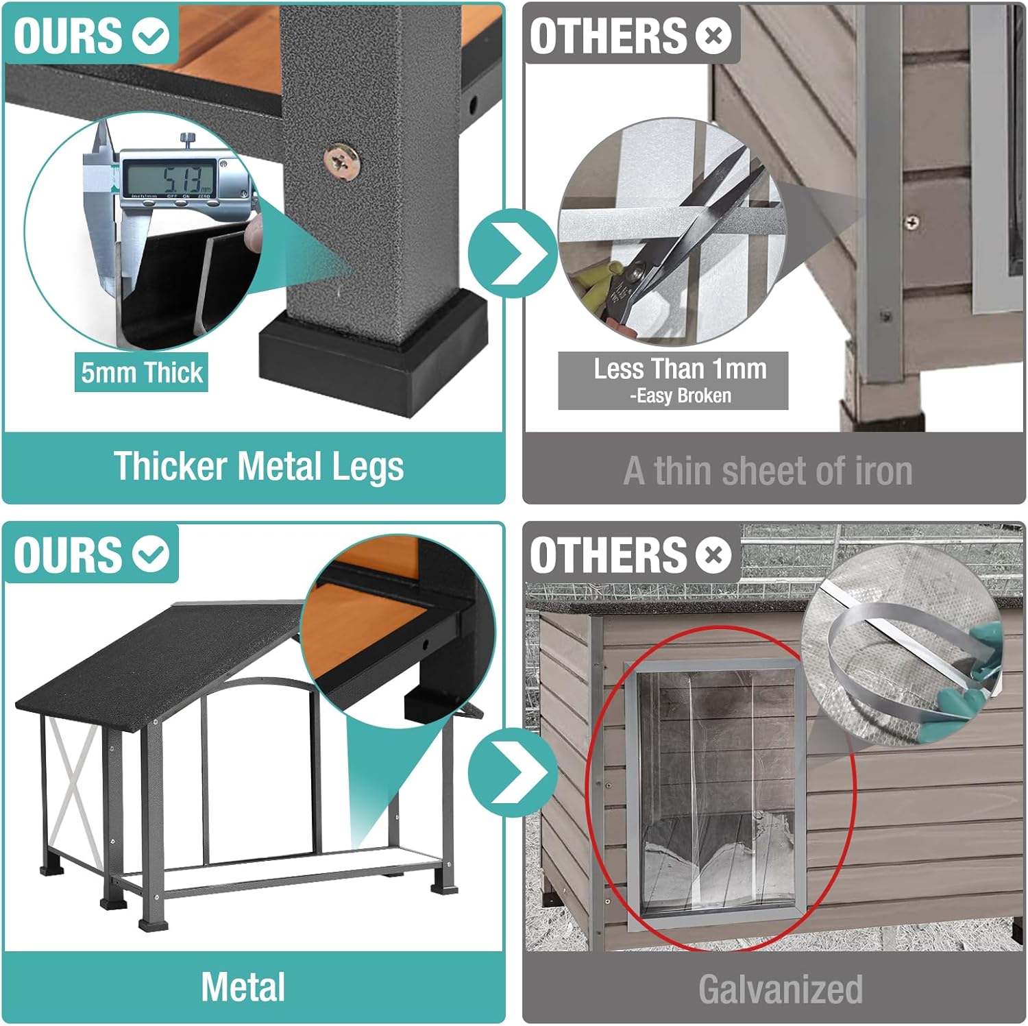 • Anti-chewing Iron Frame:Our dog outdoor kennel combine with solid wood and UNIQUEall edges cover with firm and strong iron frames.Anti-chewing iron frame to prevent your puppy chew the dog house,as well as prevent destroy and attack from wild animals outside,safe and stury home for pets.