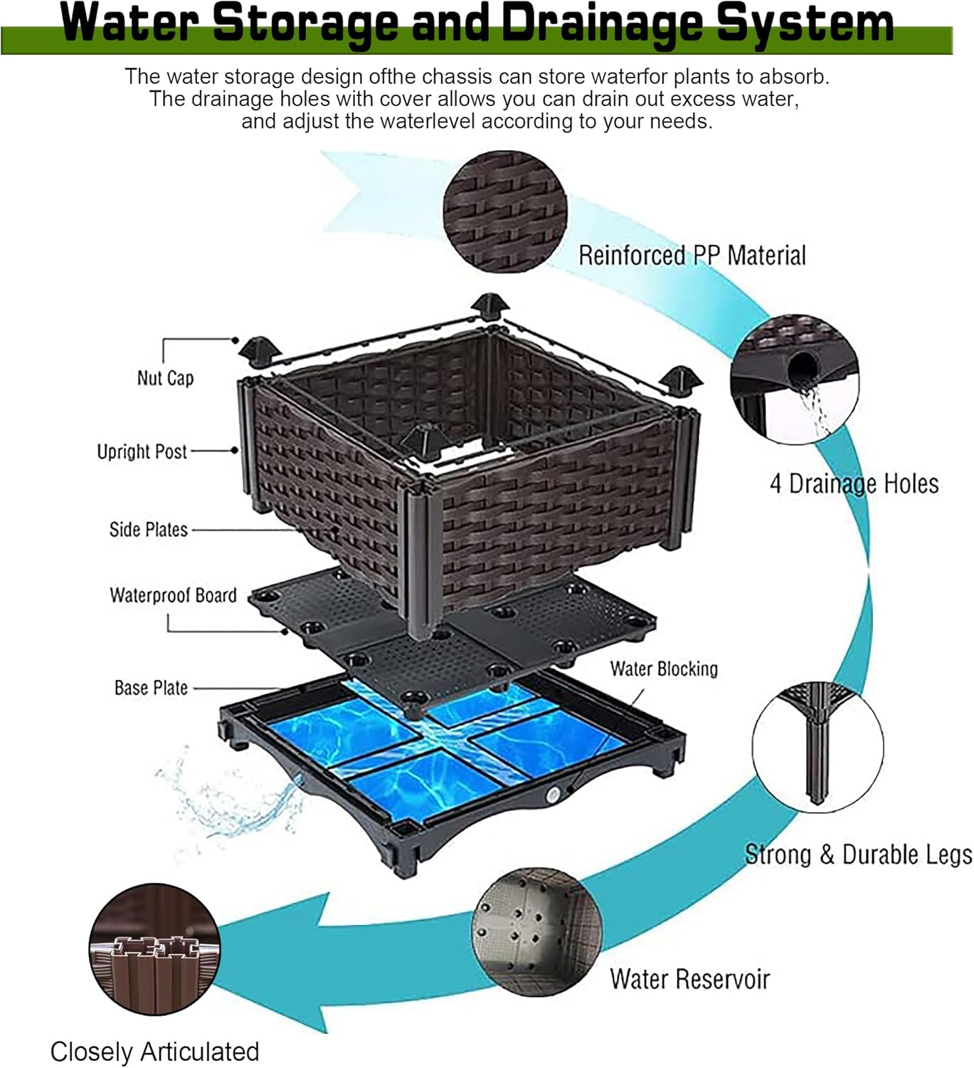 • 🌻【Durable Outdoor Growth Box】Our elevated planter boxes are made of reinforced PP material with a rattan pattern that is durable, lightweight, high load bearing, washable and reusable.
