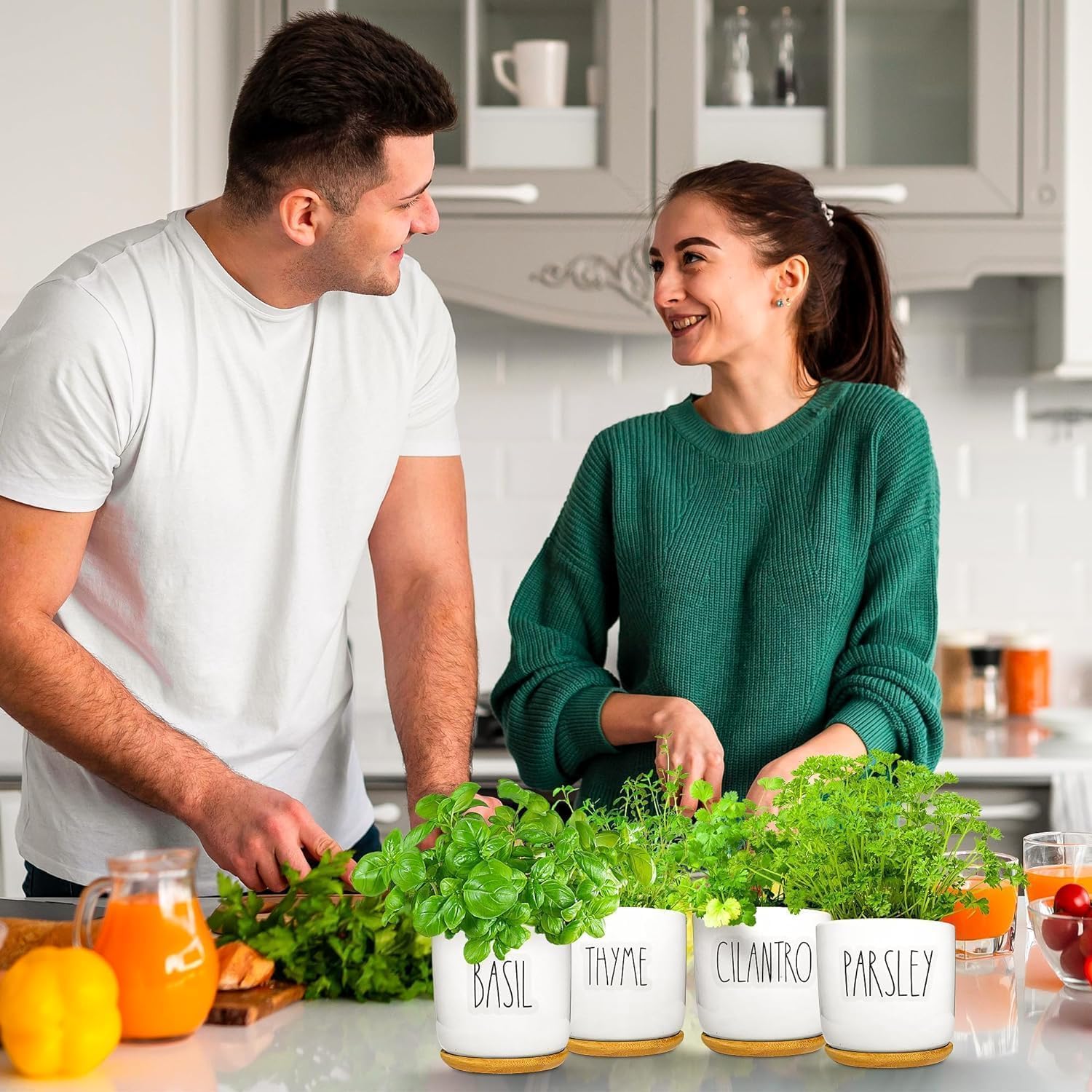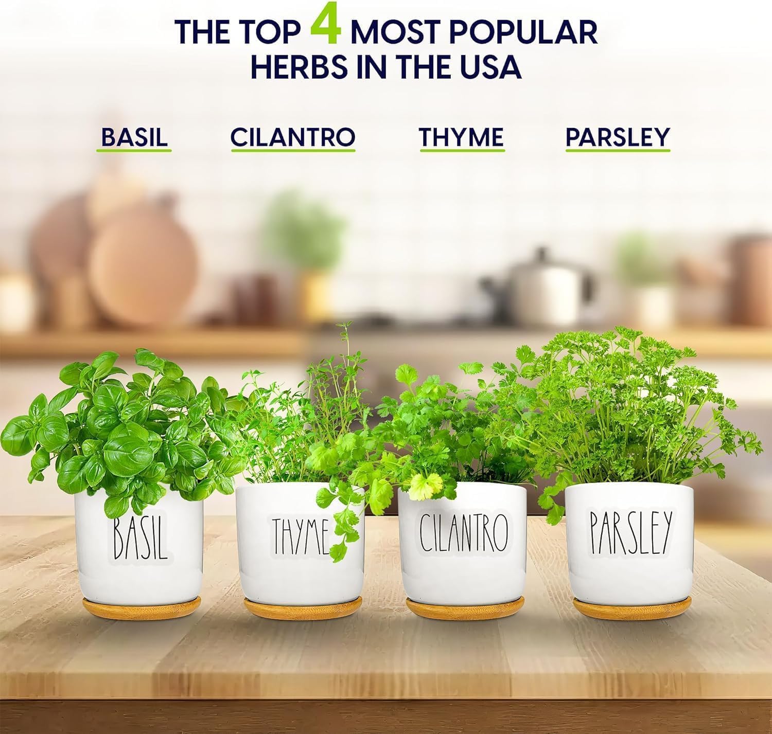 • Equipment & Accessories - This kit includes everything with nothing else to buy. You get 8 pots, 8 saucers to collect runoff, 8 expanding soil discs, and 1 kelp nutrition pack. We also include 8 transparent herb labels so you always know which pot holds which plant. Labels are printed in charming large Rae Dunn font to take the place of the usual stakes. These will look cute in your kitchen.