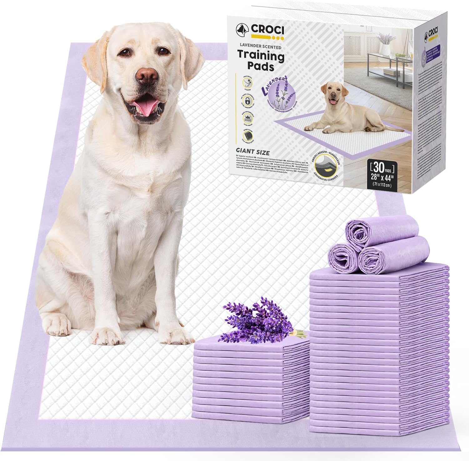 CROCI Dog Pads Extra Large 28x44in, Puppy Pads with Adhesive Tabs Super Absorbent Up to 12 Cups, Disposable (30 Counts)