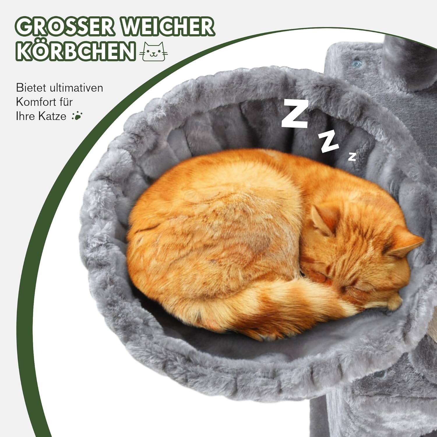 • Premium Material: The multilevel cat tree is crafted out of a CARB-certified P2-grade particle board and plush, the reinforcement posts are covered with natural sisal rope, so that cats can comfortably sharpen their claws instead of scratching the sofa