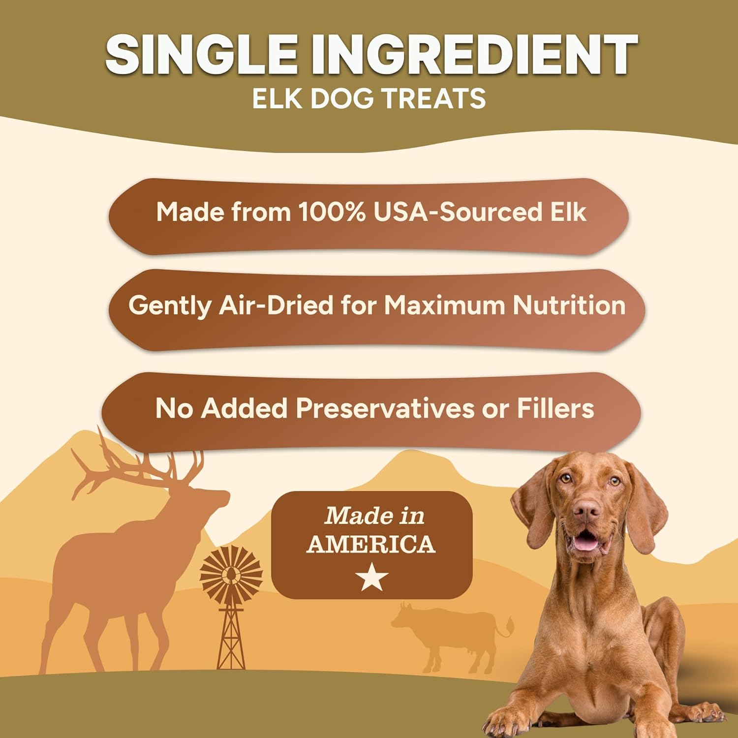 • SINGLE INGREDIENT ELK DOG TREATS: Made with 100% real elk meat and nothing else. These natural dog treats are grain-free, gluten-free, and perfect for dogs with sensitive stomachs or food allergies.