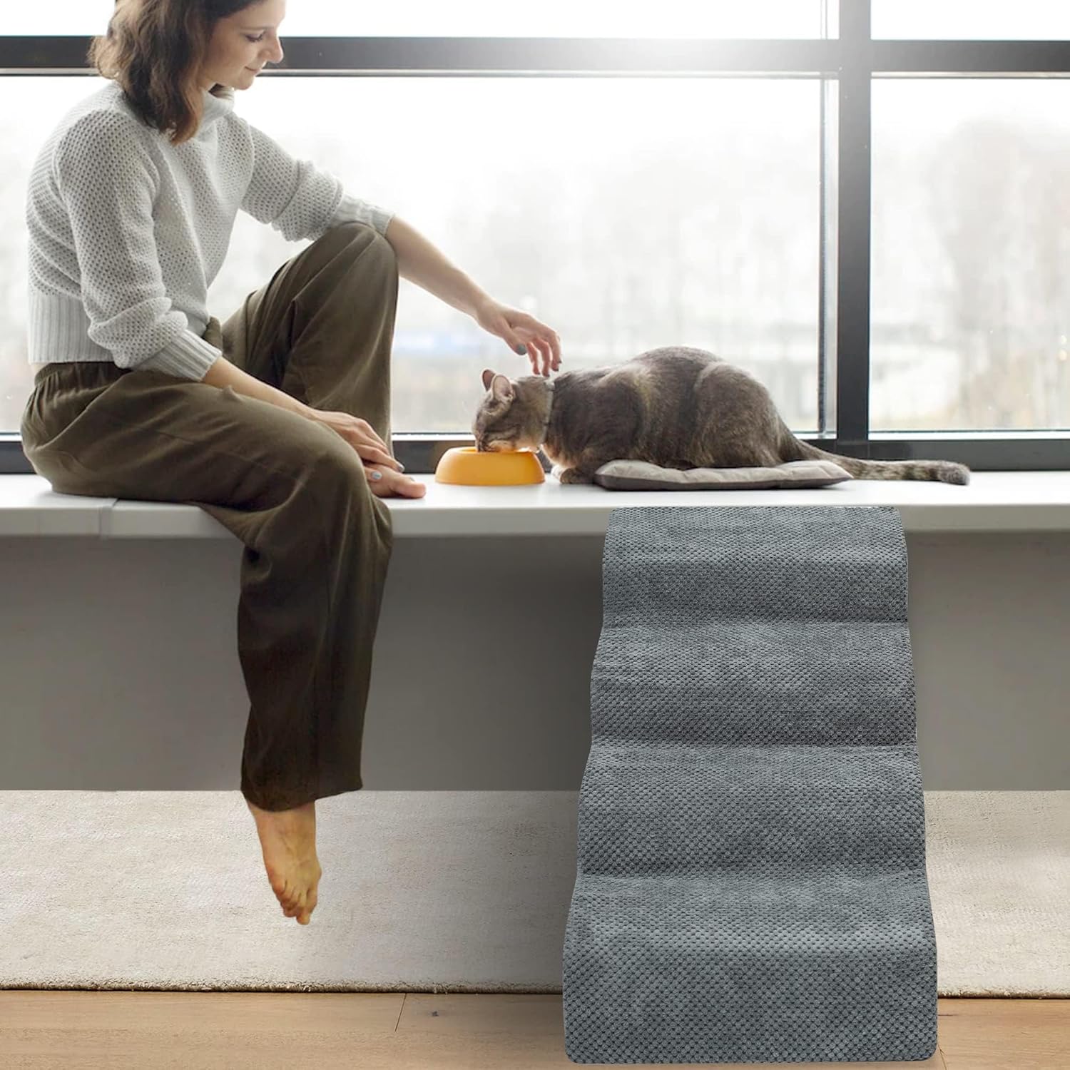 Dog Stairs for Small Dogs - High Density Foam Dog Ramp, Extra Wide Pet Steps with Non-Slip Bottom for High Beds, Couche and Sofa, Best for Dogs Injured, Older Dogs Cats, Pet with Joint Pain