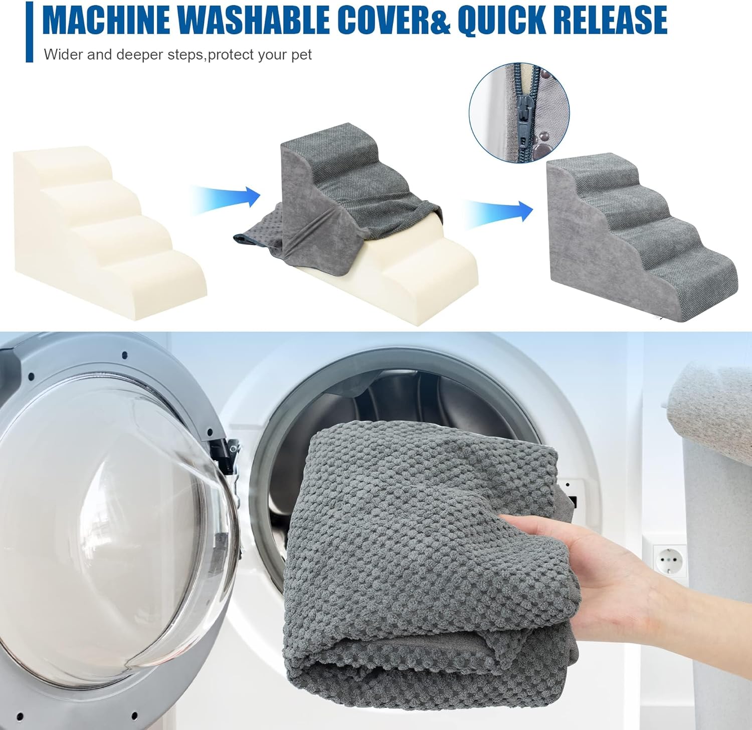 • Double Sided Anti Slip: The dog steps cover is made of corduroy with greater friction than other fabrics, which provides extra grip while in use, the bottom features nonslip rubber dots, preventing pets from sliding while climbing, providing pets with double safety protection