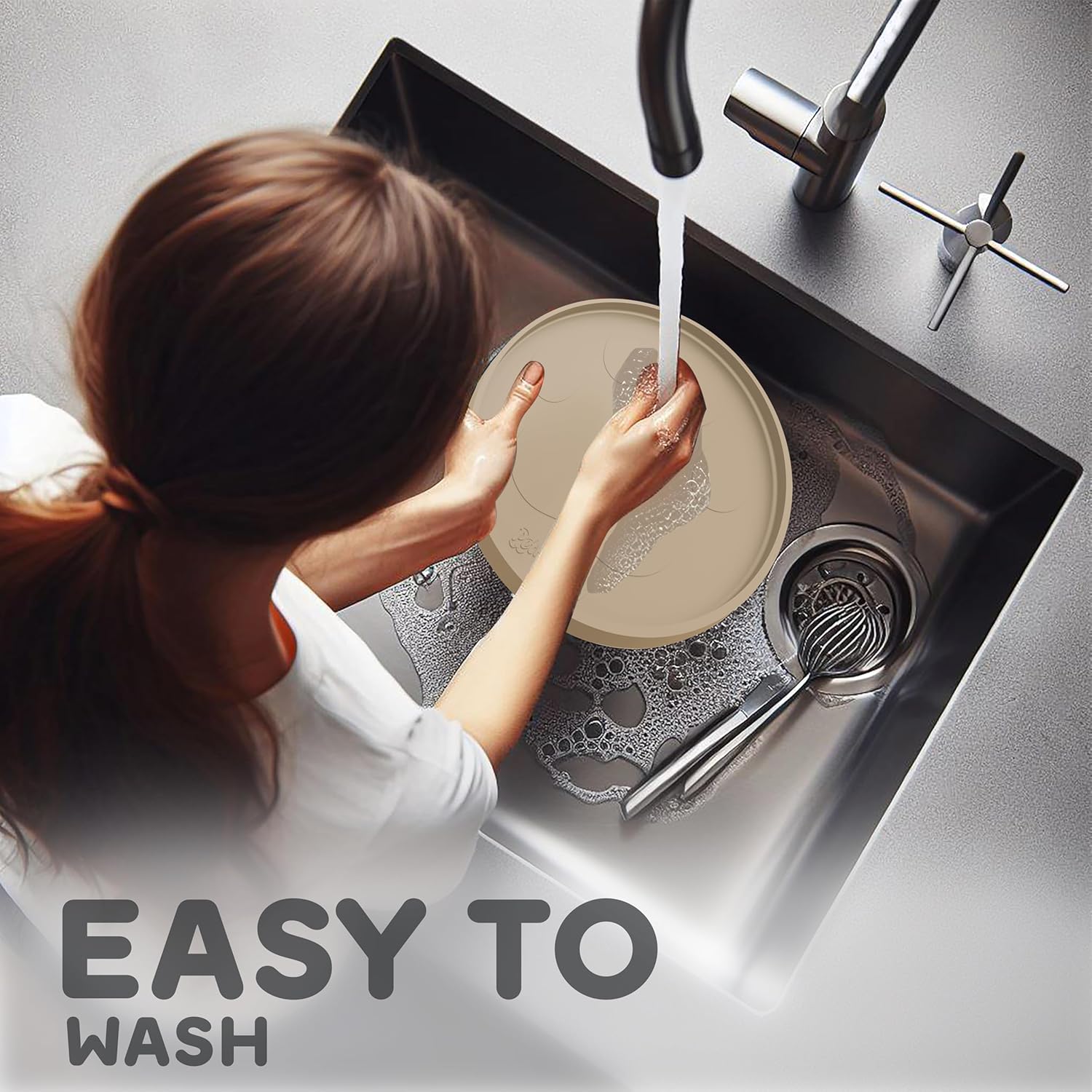 • RAISED EDGES KEEP THE MESSES WHERE IT BELONGS: Keep Your Home Spotless & Enjoy Hassle-Free Dinnertime with Your Furry Friend! Whether they eat with enthusiasm or like to play with their food, our 10" Round dog food mats for floors waterproof are specially designed to reduce cleanup time for both wet and dry foods. Treat yourself and your furry pal to a cleaner, more enjoyable mealtime experience.