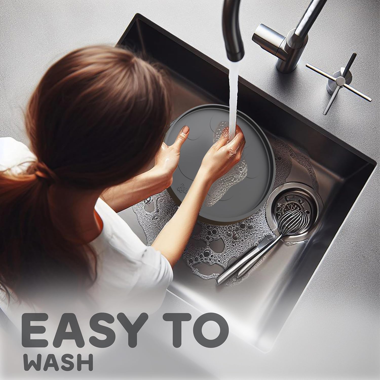• RAISED EDGES KEEP THE MESSES WHERE IT BELONGS: Keep Your Home Spotless & Enjoy Hassle-Free Dinnertime with Your Furry Friend! Whether they eat with enthusiasm or like to play with their food, our 10" Round dog food mats for floors waterproof are specially designed to reduce cleanup time for both wet and dry foods. Treat yourself and your furry pal to a cleaner, more enjoyable mealtime experience.