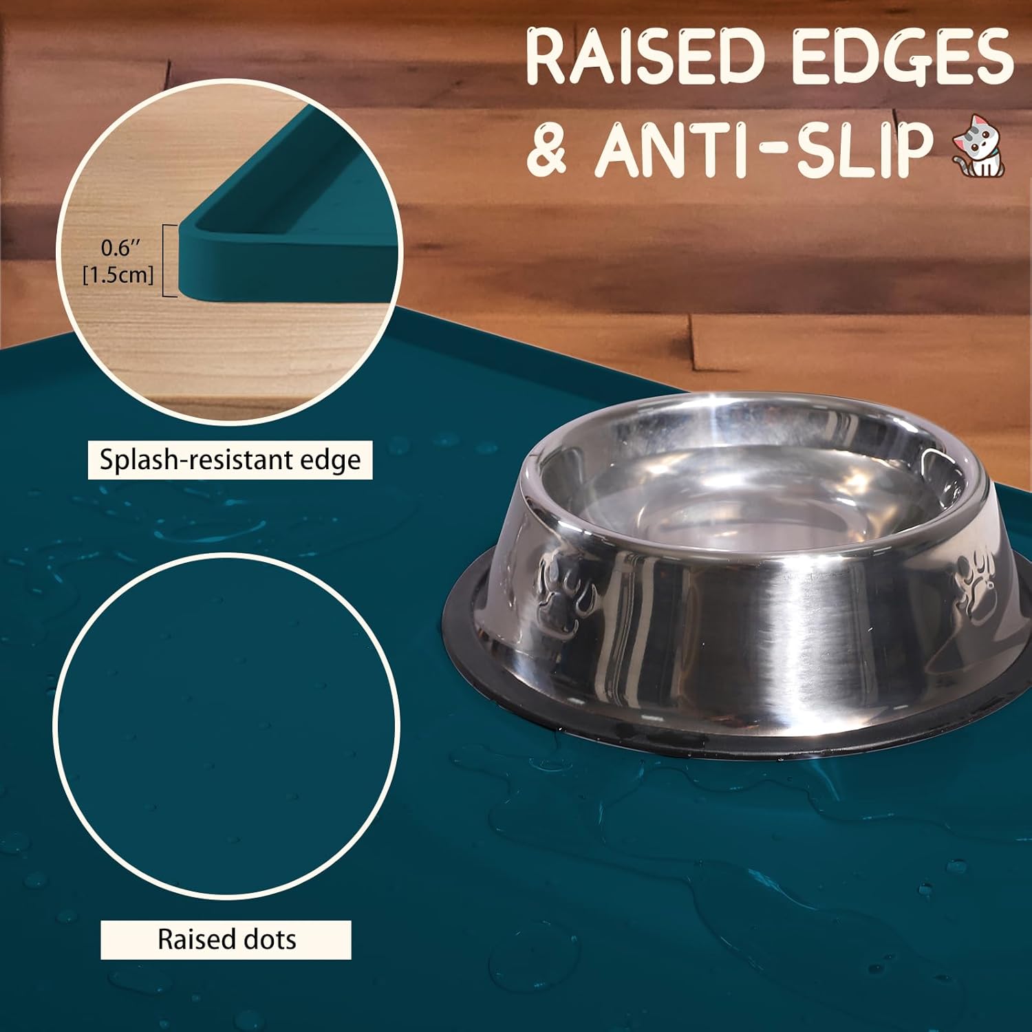 MateeyLife Silicone Cat & Dog Food Mat for Floors Waterproof, Anti-Slip Dog Bowl Mats for Food and Water, Pet Feeding Mats with Lip to Prevent Spills, Pet Placemat for Messy Drinkers to Protect Floors