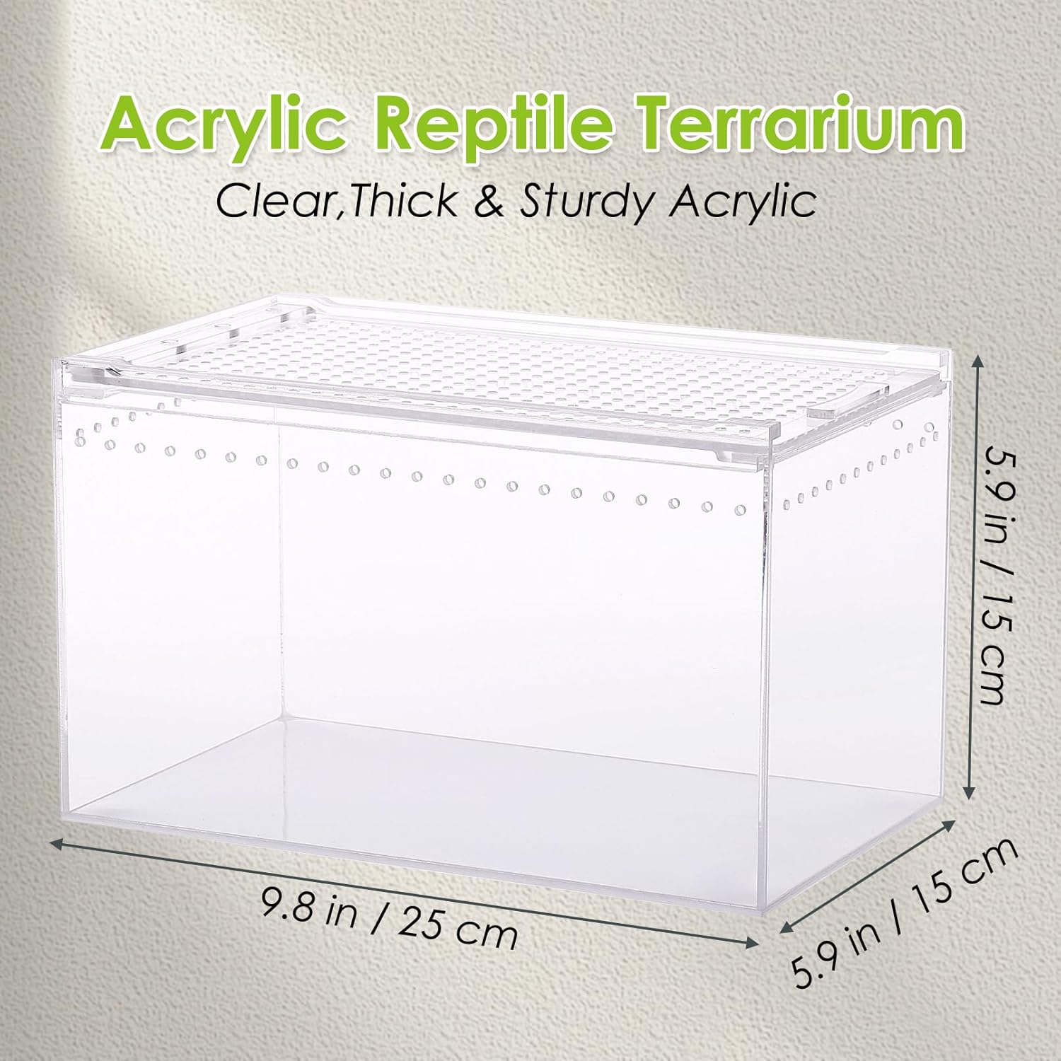 • Acrylic Reptile Terrarium: Reptile enclosure is 9.8 x 5.9 x 5.9 inches, suitable for small reptiles and amphibians or Invertebrates, such as jumper spider, tarantulas, geckos, frogs, mantis, spiders, scorpions, snails or any other insects