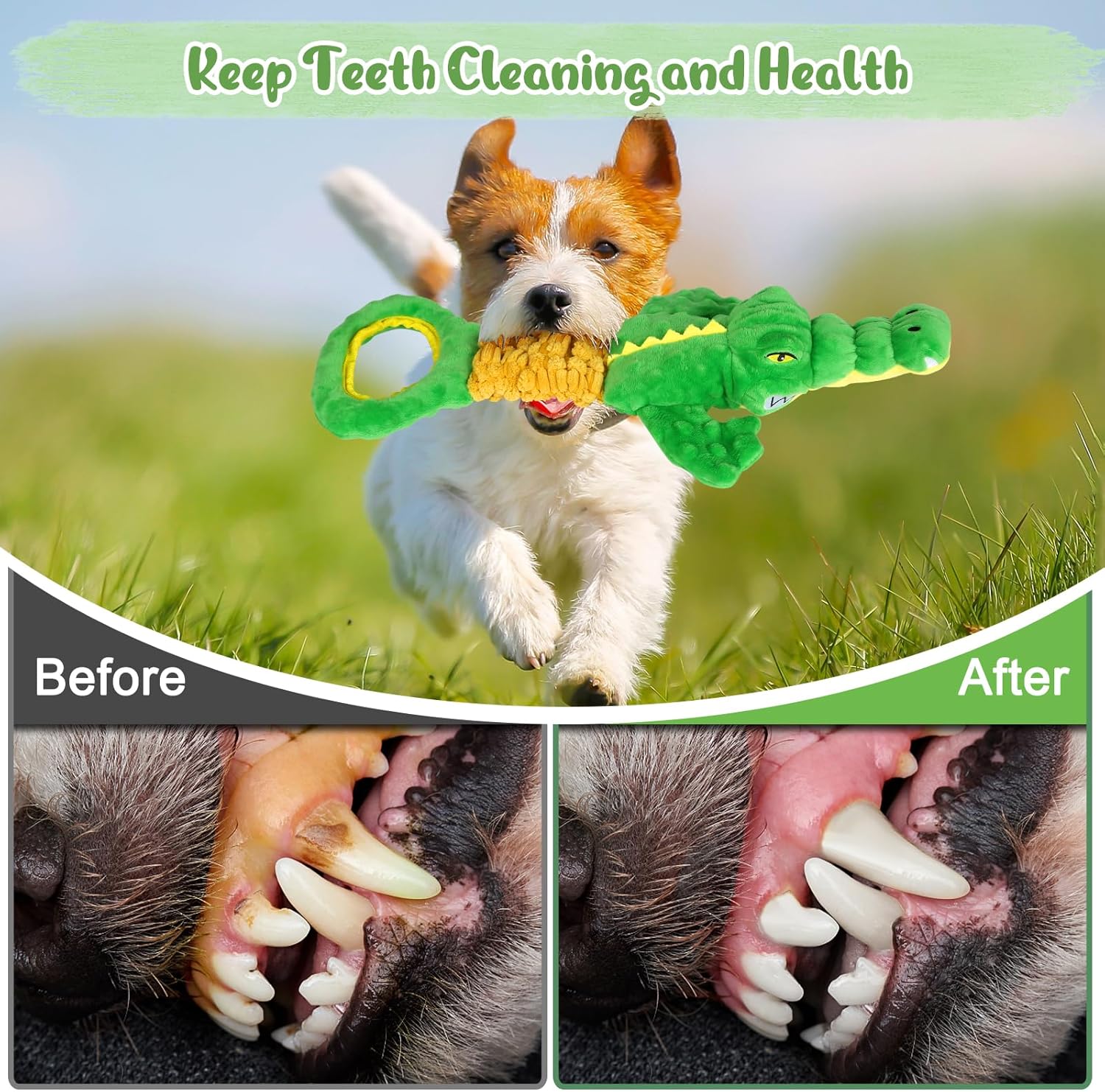 • Large Size Dog Chew Toy: With a total length of 17 inches and a retractable body section that stretches up to 23 inches, this crocodile-shaped plush toy is perfect for tugging, chewing, and close play, providing endless moments of joy