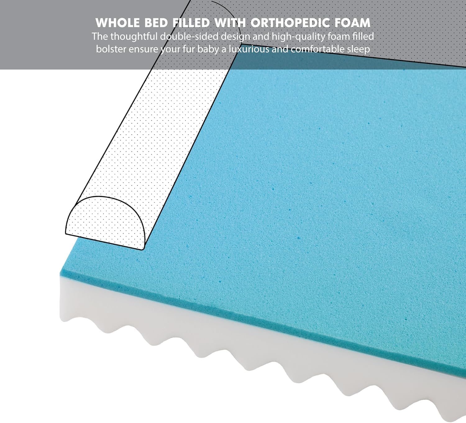 • Orthopedic Support Dog Couch with 2 layer foam base: 3" egg crate foam and 0.5" memory foam helps distribute weight evenly and provides good amount of softness and support to relieve pressure and joint pains for senior pets.
