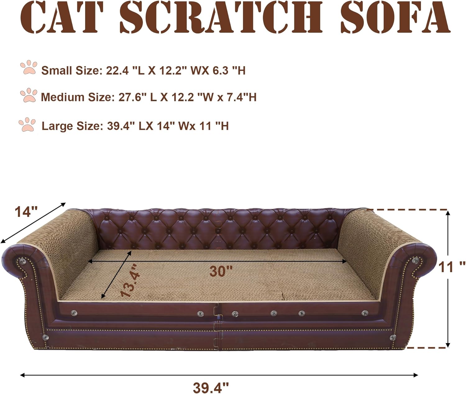 • Cat Scratch Sofa: The sofa cat scratching board is available in a variety of sizes and you can choose the right size for your cat. Dimensions :39.4"L X 14"W X 11"H. Cat couch bed has a lot of cat space, enough for multiple cats to sleep, play, roll around and scratch.