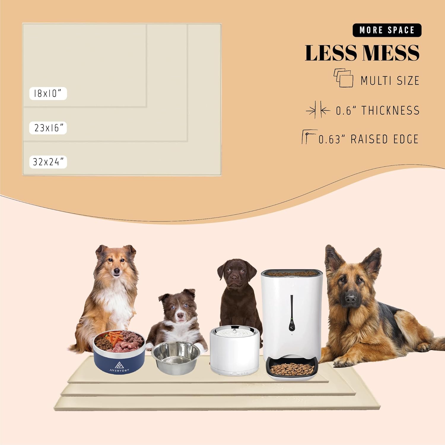 • Perfect for Small to Medium Breeds: Need a premium dog bowl mat for medium and small breeds? Elevate feeding affordably with AVERYDAY's 18x10'' pet bowl mat - where quality meets affordability for your furry friends