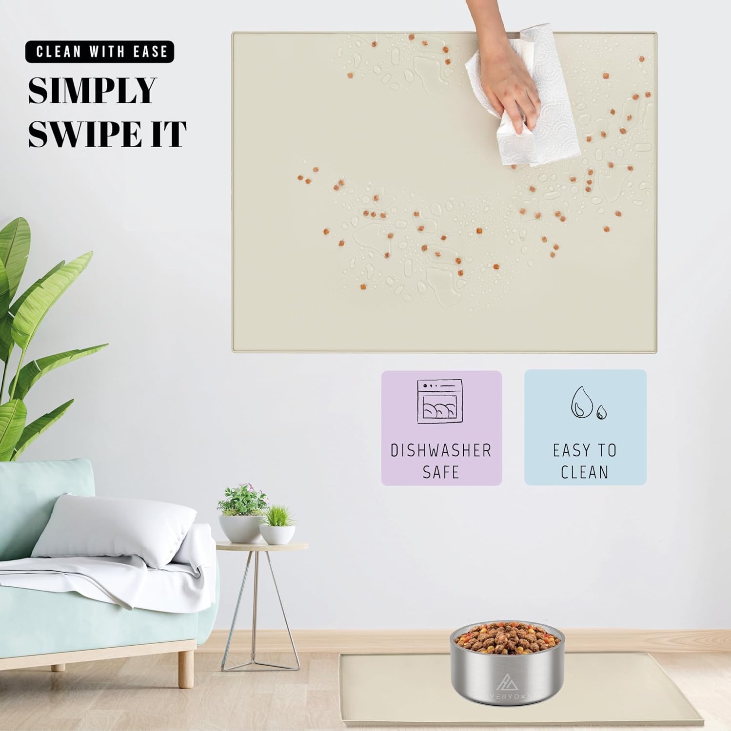• Non-Slip Design: No more sliding bowls! AVERYDAY's heavy-duty pet mat stop bowls from sliding during meals. The dotted surface boosts slip resistance, ensuring your pets' food and water bowls stay securely in place