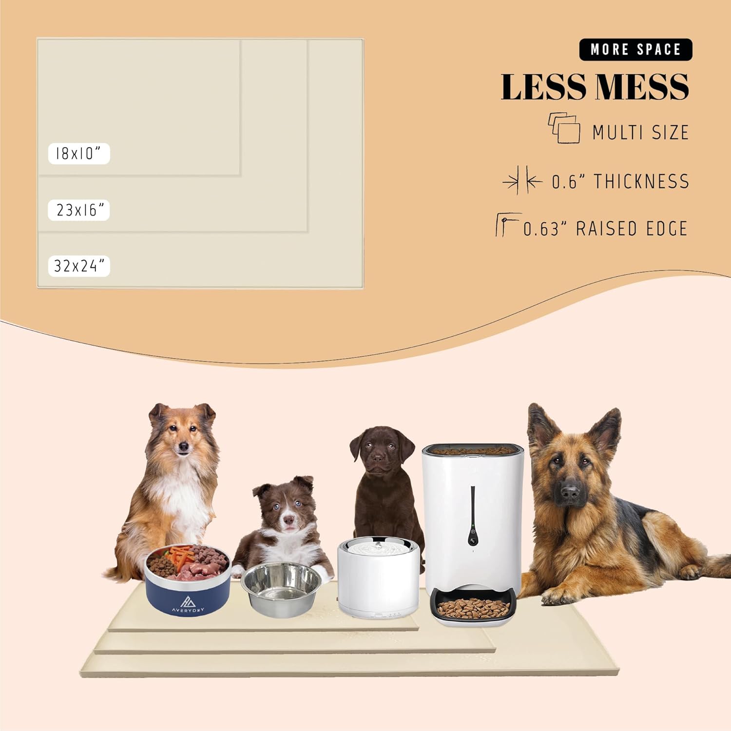 • Perfect for Medium to Large Breeds: Need a premium dog bowl mat for medium and small breeds? Elevate feeding affordably with AVERYDAY's 32x24'' pet bowl mat - where quality meets affordability for your furry friends