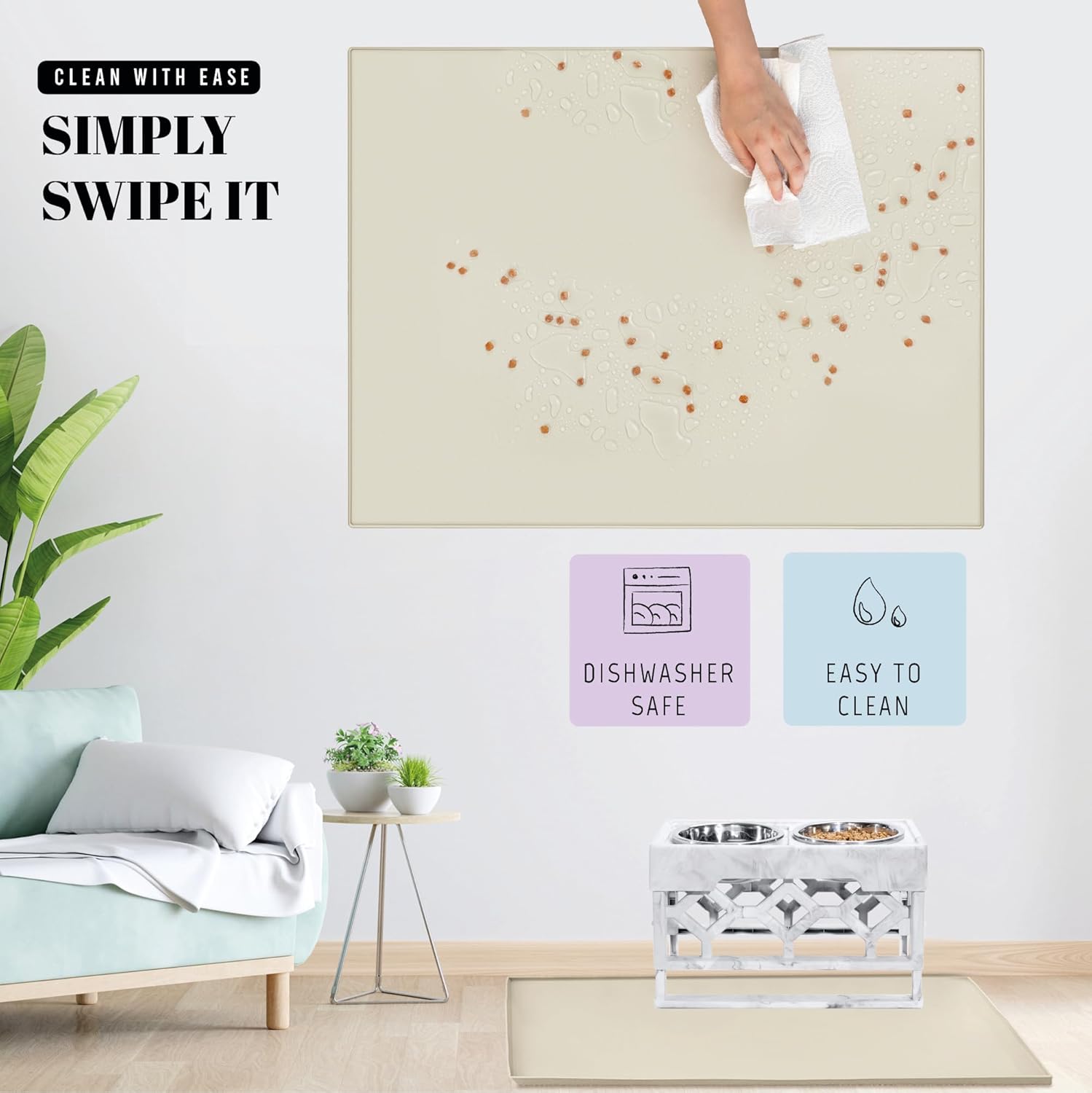 • Hassle-Free Cleanup: Want to reduce cleaning time? Our high durability dog food mat large for saves you the hassle. Just wipe it with a paper towel every 3-5 days, and say goodbye to daily cleanup chores