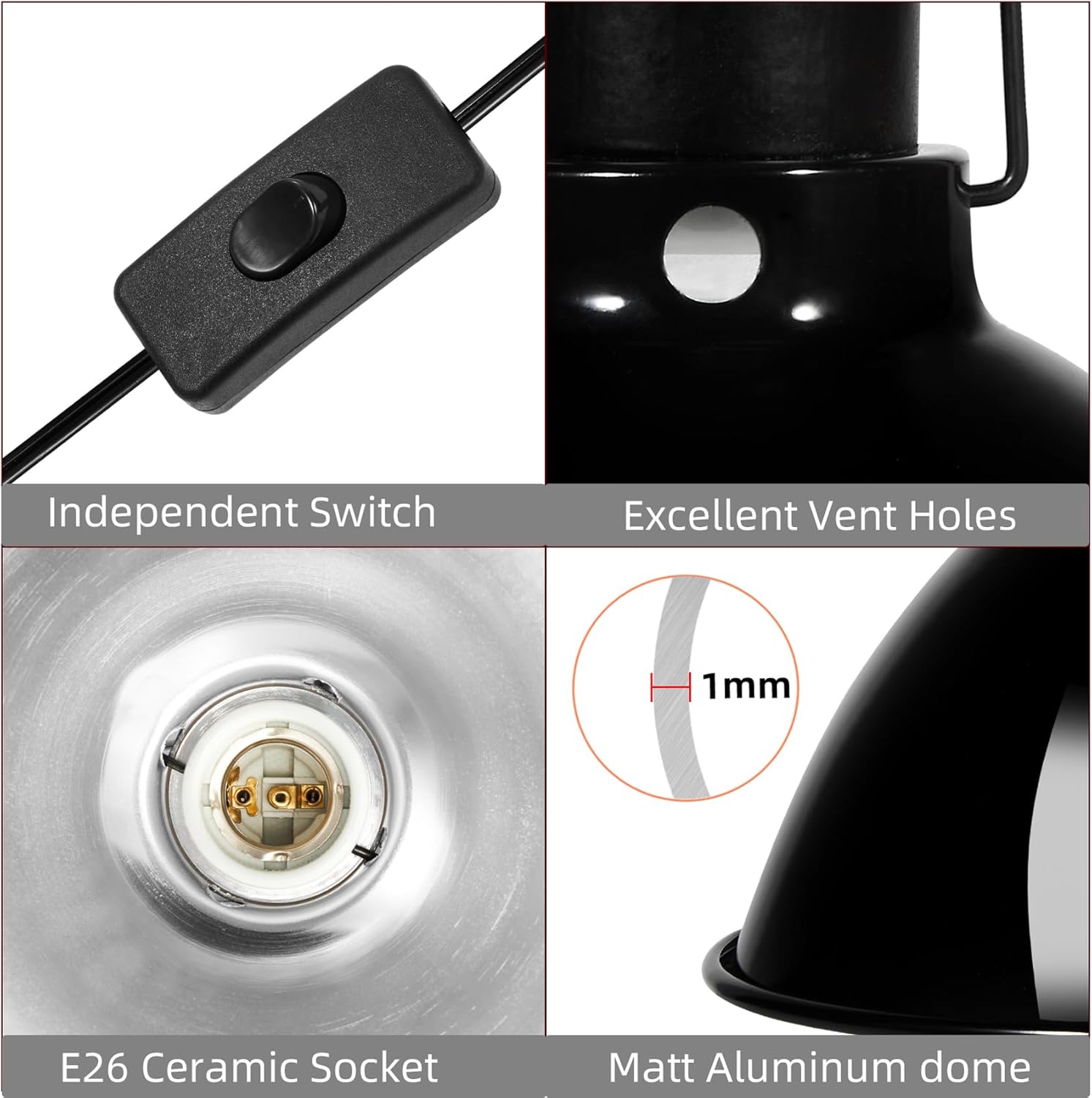 • 【Ceramic Heat Lamp&Max 150W】:The 8.5inch dome reptile heat lamp fixture is rated at a maximum of 150 watts and has an E26 ceramic socket. The ceramic lamp head offers good heat resistance,making it suitable for most reptile heat lamp reptile bulbs; you can match different reptile heat lamps meet the needs of pets.