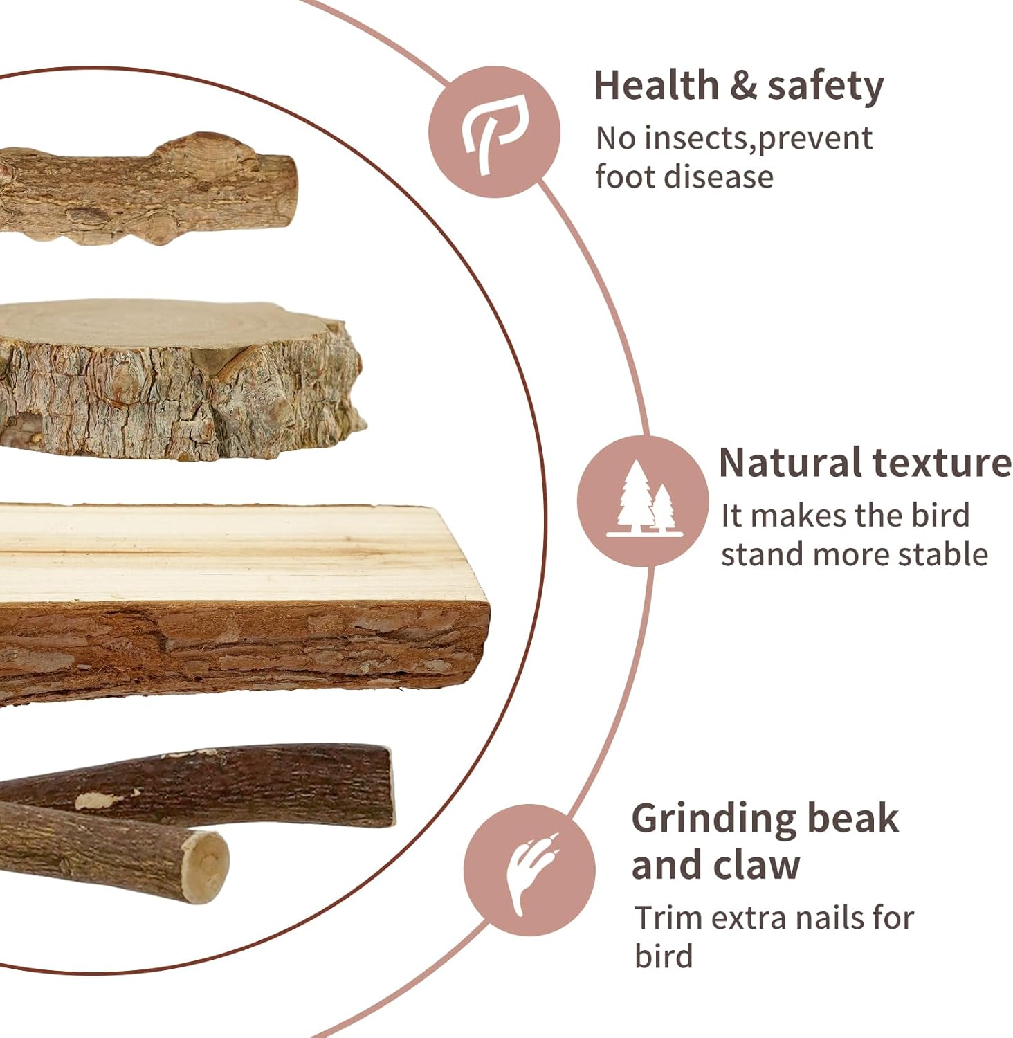 • 【High Quality Wood】Made of 100% Natural Wood, after High Temperature Fumigation and Drying,Our Bird Perches Are Environmentally Friendly, Nontoxic, Durable, Safe for Your Small Pets and in Line with the Requirements of a Bird's Natural Habitat. There May Be Some Wood Chips in the Package, Which Are Dropped by the Tree Skin During Transportation, They Are Not Garbage, Please Understand.