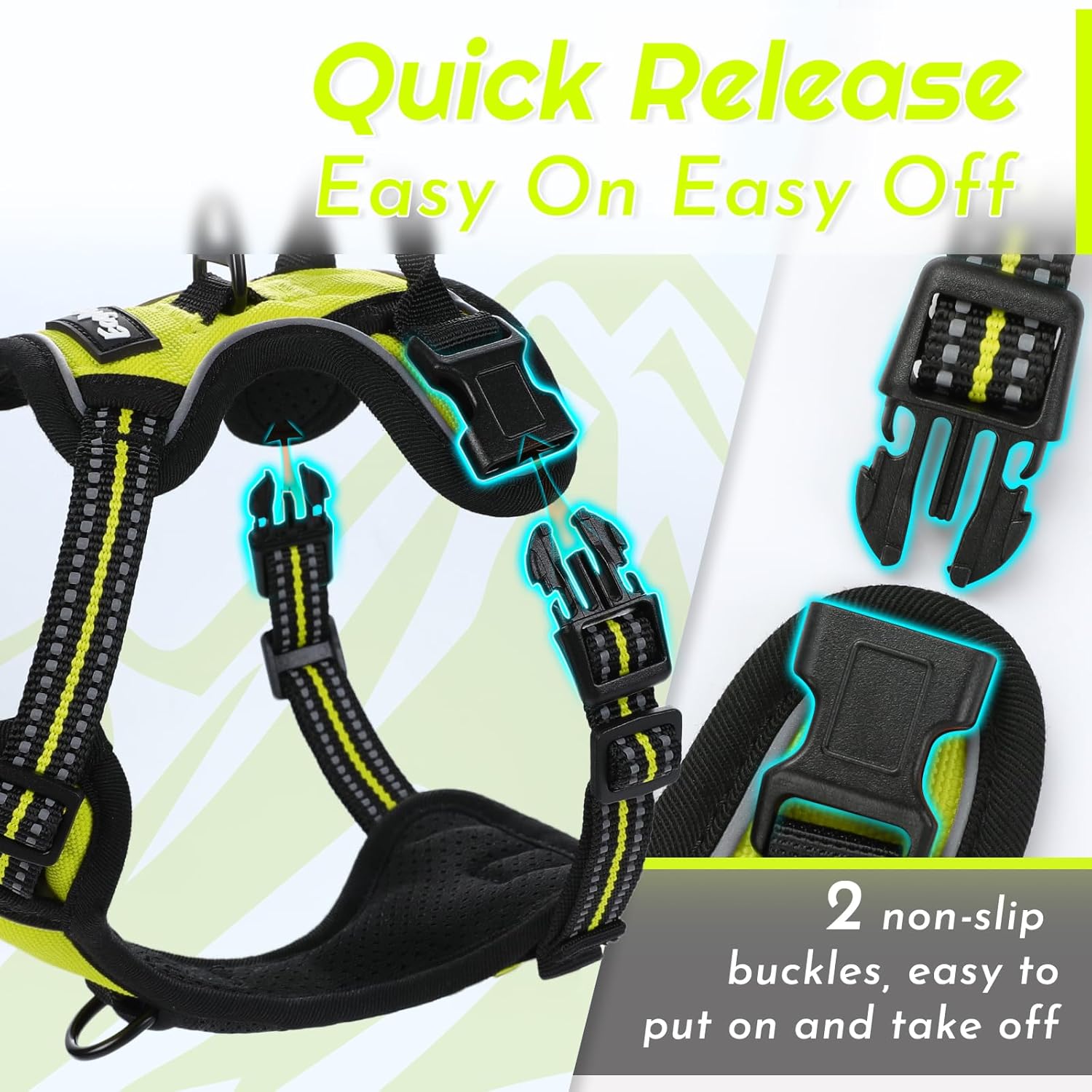 • Easy to Use: Our dog harness is designed with 2 quick-snap buckles for simple wearing and 4 adjustable sliders at the neck and chest for a perfect fit. Just slip it over your dog's head, buckle it up, adjust the straps, and you're ready to go in seconds