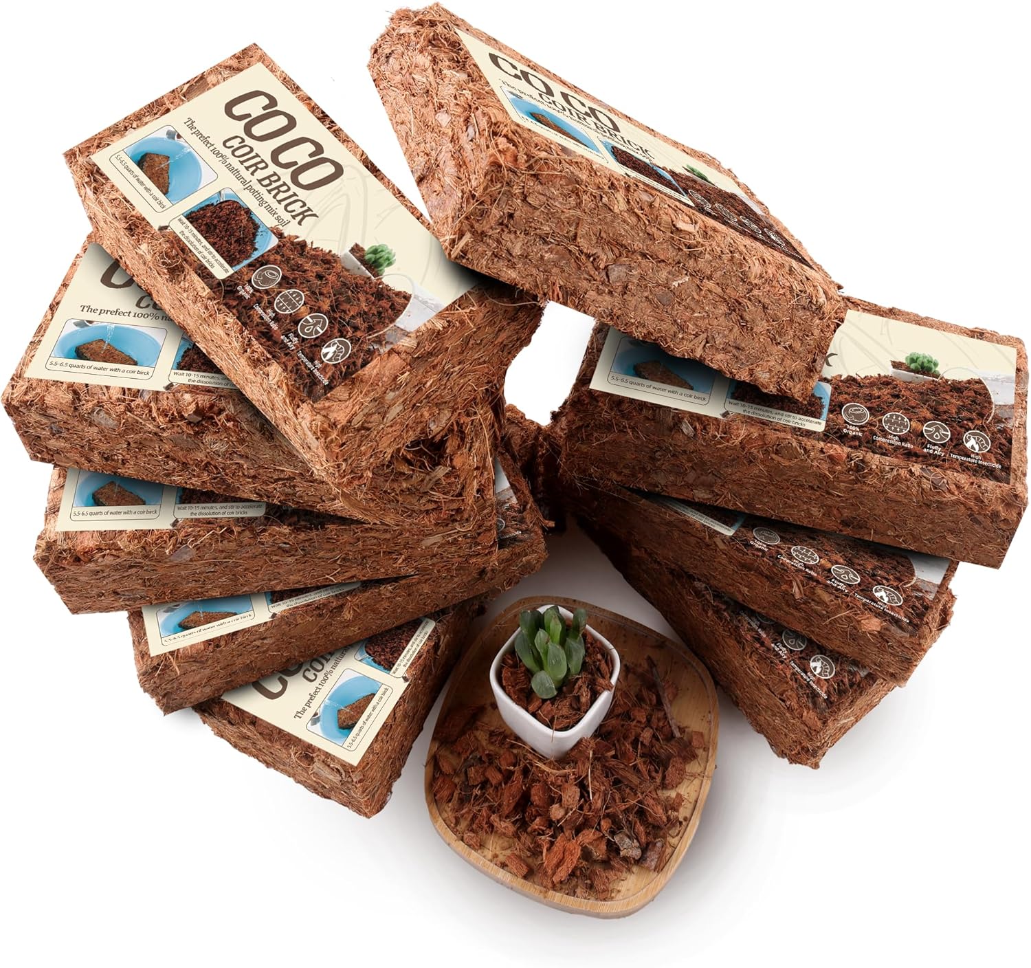 • [100% NATURAL & ORGANIC COCONUT CHIP]: Our coco chips bricks is made from the coconuts husk, which are a natural and sustainable resource. It is providing a natural and eco-friendly growing medium for your plants making coconut husk chips an eco-friendly choice for your gardening needs. As well landscaping, reptile bedding, terrarium bedding, and ground covering.