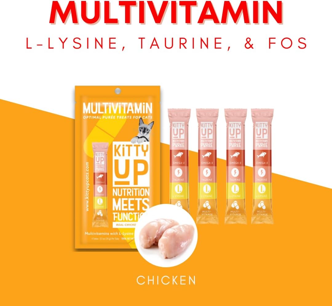 Lickable Cat Treat Pouches for Indoor Cats - All Natural Chicken Puree Tube Treats, Kitten and Senior Soft Wet Cat Treats - Grain Free, Lysine, Taurine; 12 Tubes .05 oz ea.
