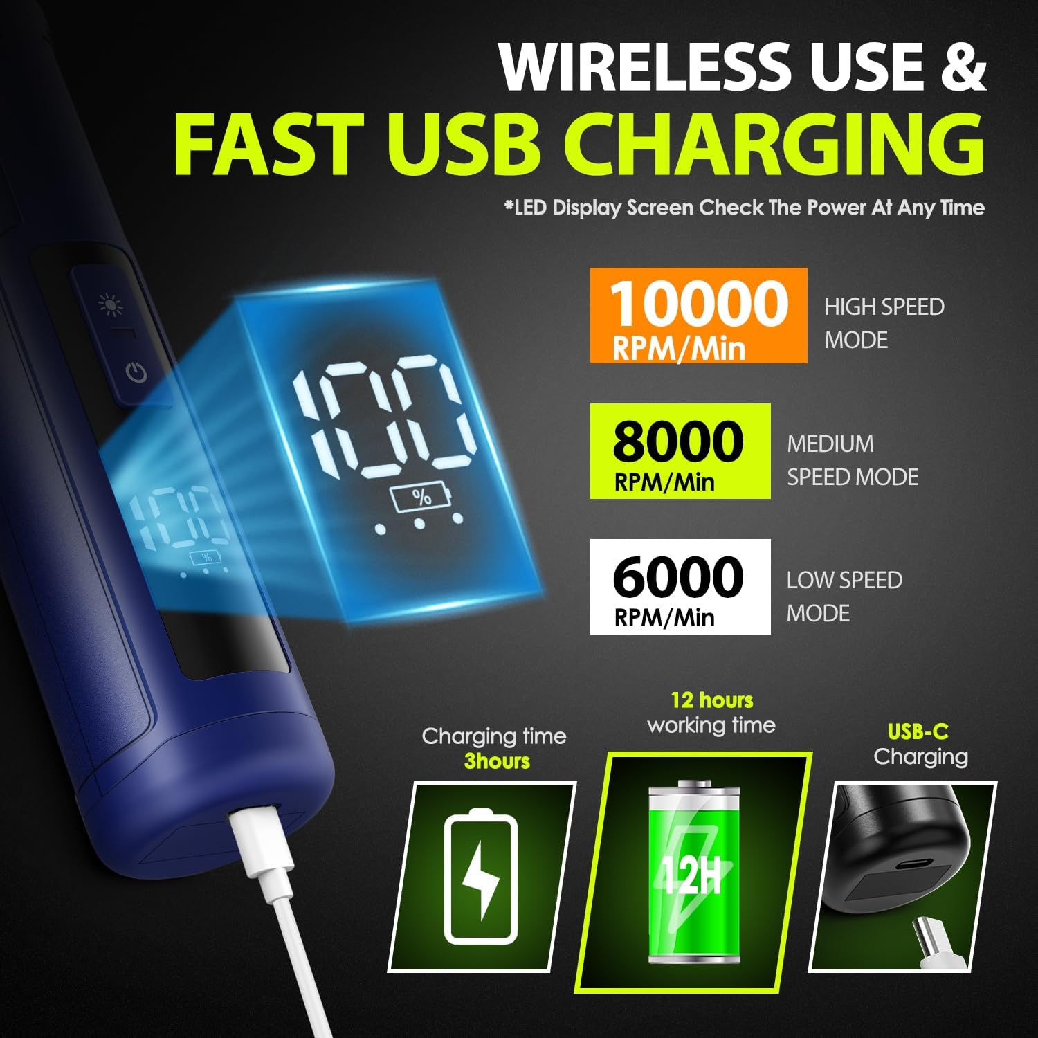 • 【3 Speed Switch & Grinding Ports】: IREDOON dog nail trimmer boasts a 3-speed switch and 3 grinding ports, which allows pet owners to adjust the speed and grinding settings based on their pet's size and nail hardness.