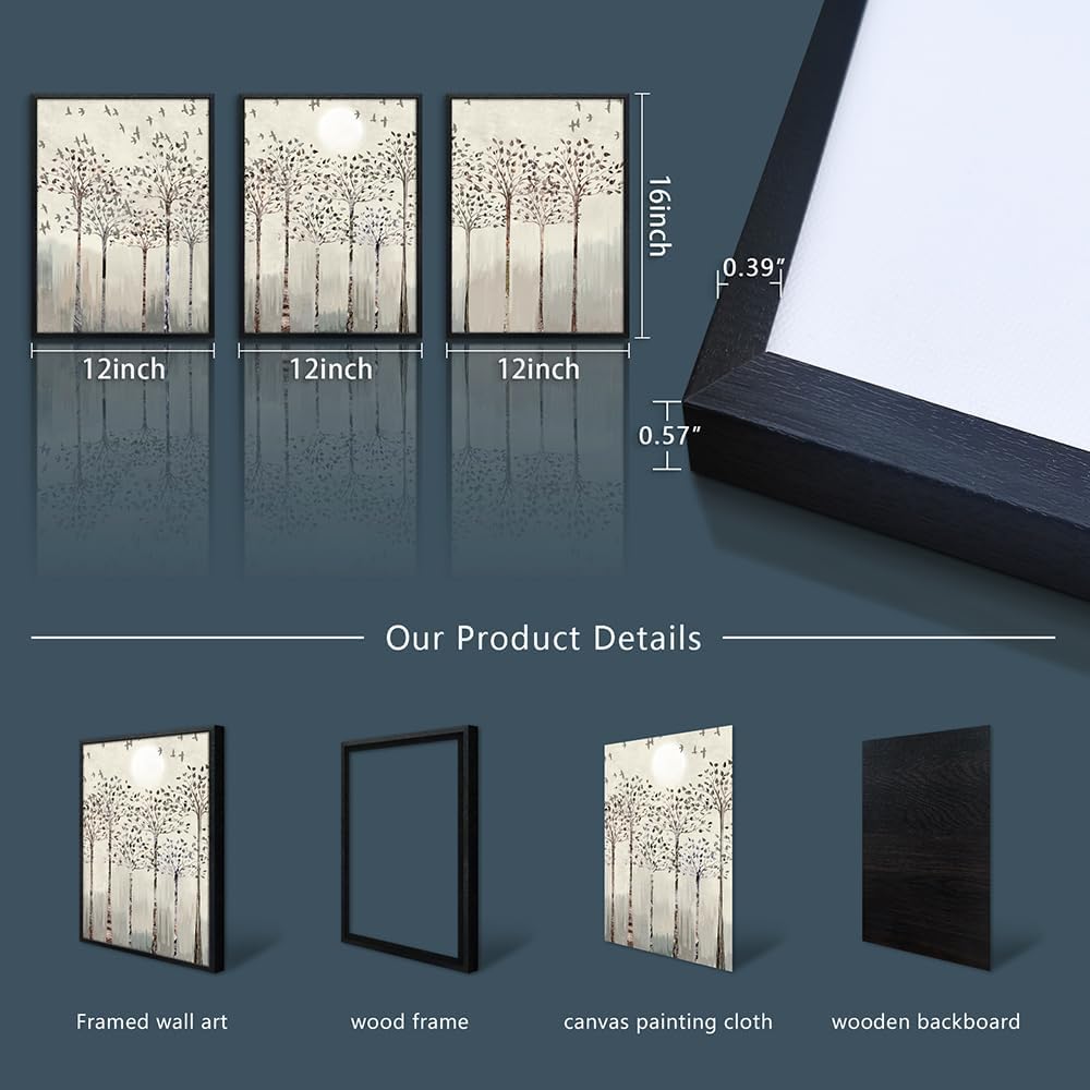 Black Framed Wall Art for Living Room Bedroom Wall Decor office Wall Decorations trees and birds Abstract Wall Paintings Sunrise and sunset Wall Pictures Artworks Modern 3 Piece Framed Prints Art