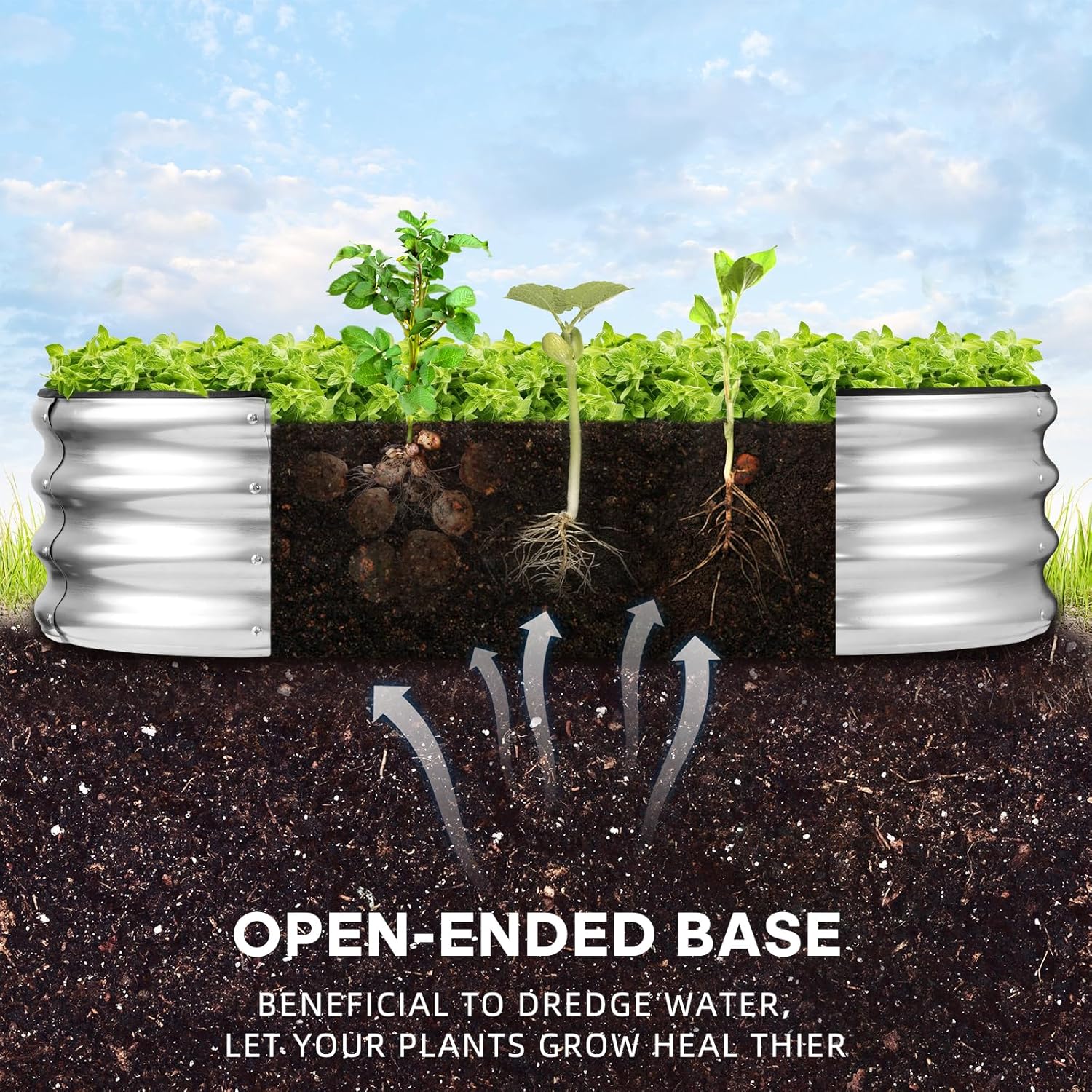 • Open base: This raised garden bed metal galvanized is designed with an open base, Sits on the ground garden bed which can effectively avoid water accumulation .