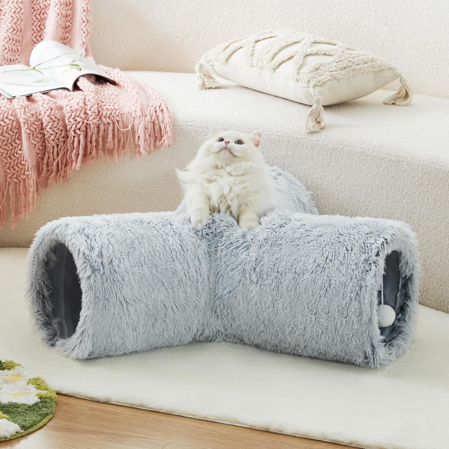 • Best Ways to Play: Our cat tunnel with 3 spacious tunnels, peephole & beall toy, this popular cat toy gives your kitty more ways to have fun. Provides hours of exercise & self-amusement.And its furry appearance can decorate your room, giving you a beautiful experience.
