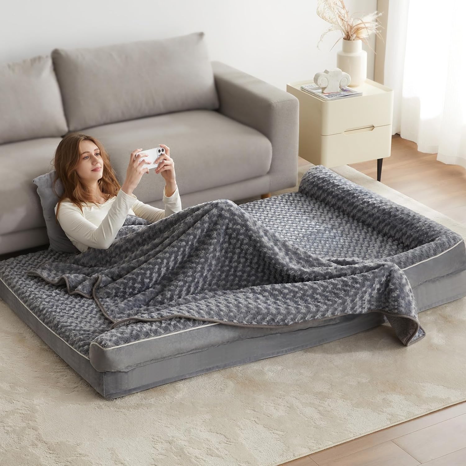 • EASY TO CLEAN&NON-SLIP: The sofa dog bed comes with a removable and washable dog pillow cover to ensure that the big dog bed can be easily cleaned. The washable dog bed has a durable zipper that allows for easy removal and reattachment. The non-slip rubber particles of the waterproof dog bed bottom hold it in place on the floor without sliding.
