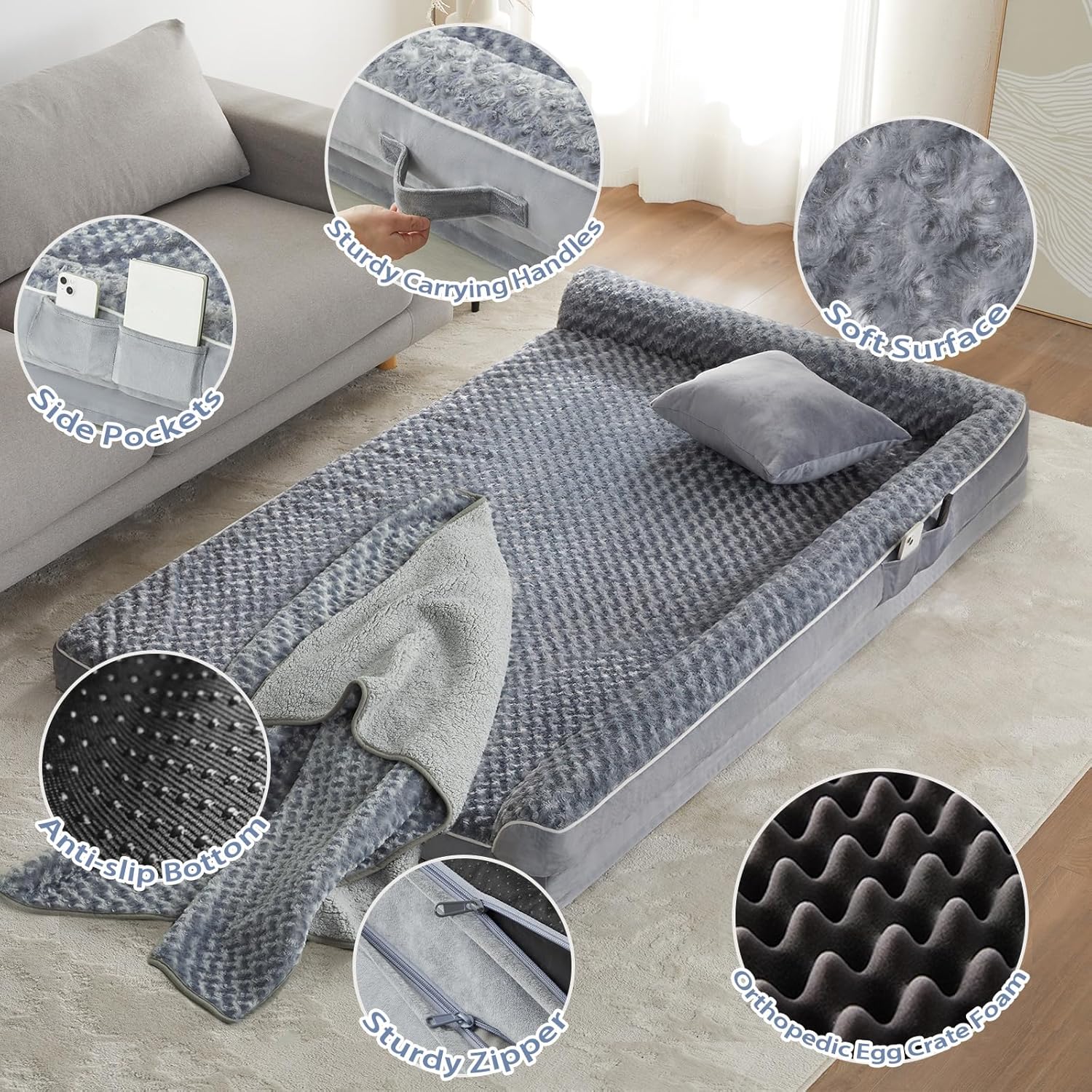 BFPETHOME Orthopedic Dog Beds for Extra Large Dogs, Waterproof Sofa XXL Dog Bed with Sides, Non-Slip Bottom and Egg-Crate Foam Big Pet Couch Bed with Washable Removable Cover,Pet Bed for Large Dogs