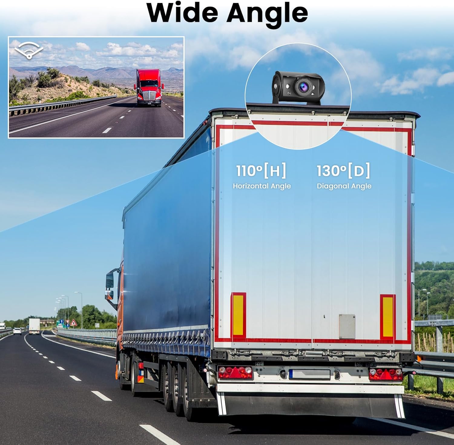 - ใIP69 Waterproof & Wide Angleใ Backup camera monitor kit with IP69 waterproof technology allow you to view the image in raining day. Compared with previous plastic camera, you don't have to worry about this cameras getting water. With 110ยฐ horizontal and 130ยฐ diagonal angle, which efficiently reduces the blind spots, ensuring drive safety