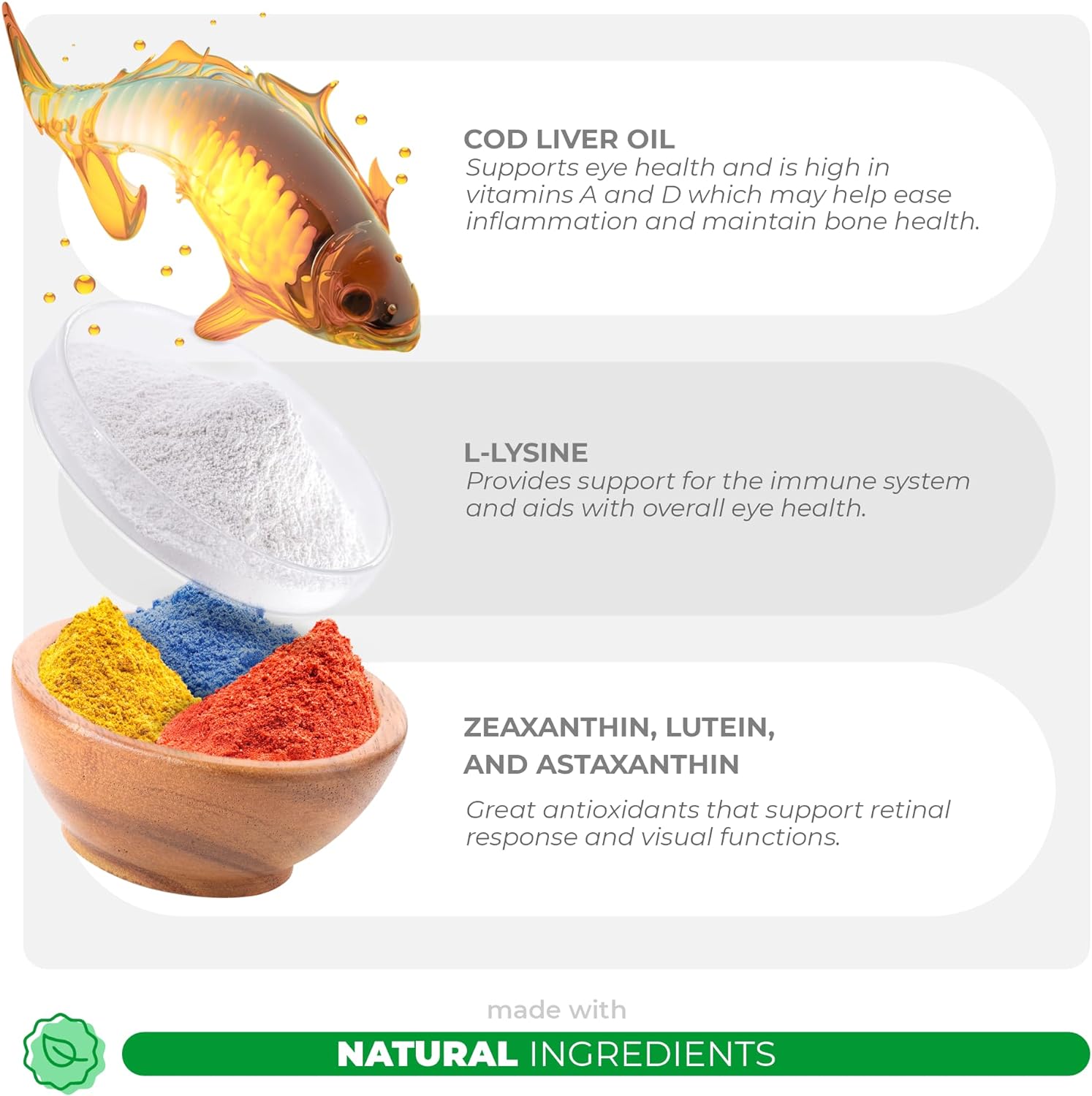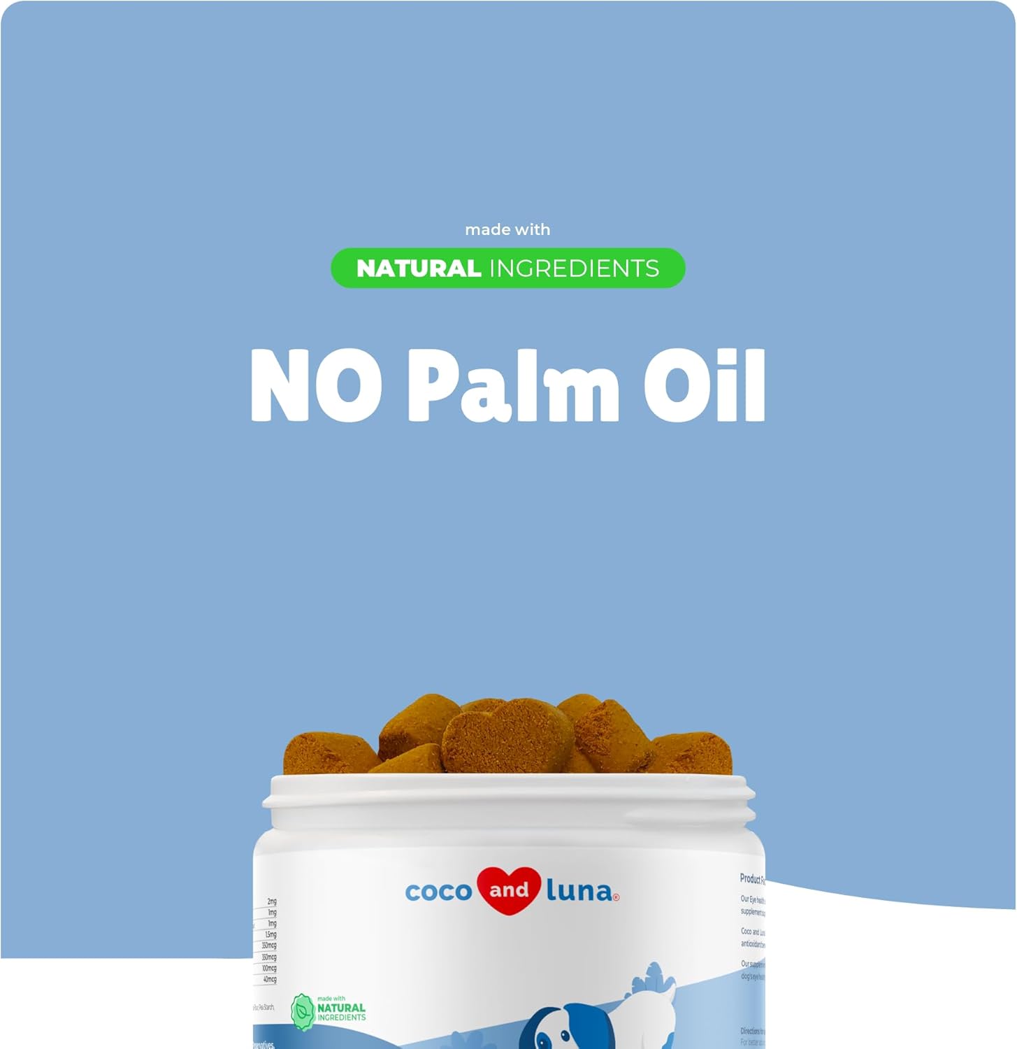 • Eye Health Support for Dogs- Coco and Luna Eye Health Support contains natural antioxidants, vitamins, and cod liver oil to promote eye health for dogs.