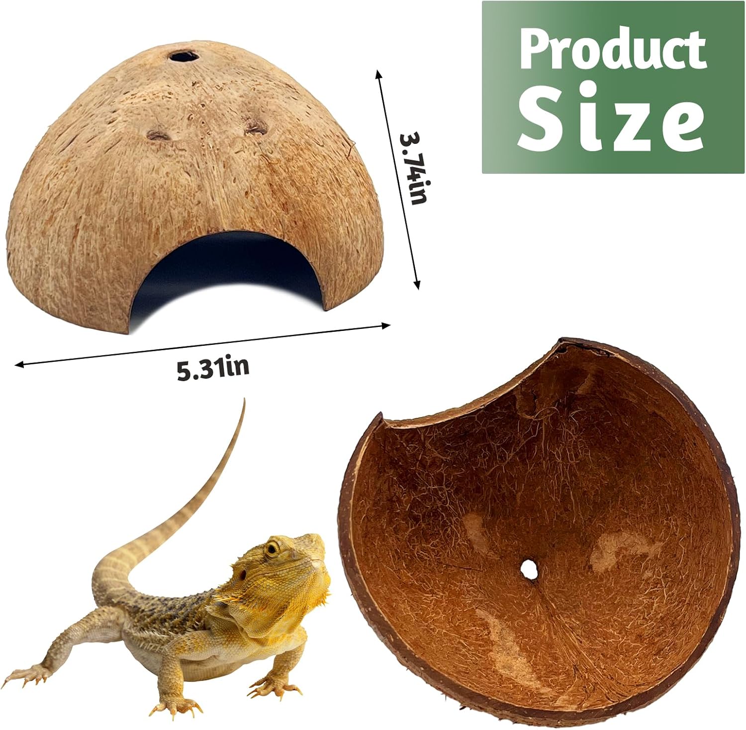 • Product Size: The large space of this coconut hide (5.31 x 3.74 inches) provides a cozy and warm environment for your snake leopard gecko hermit crab tortoise crested gecko