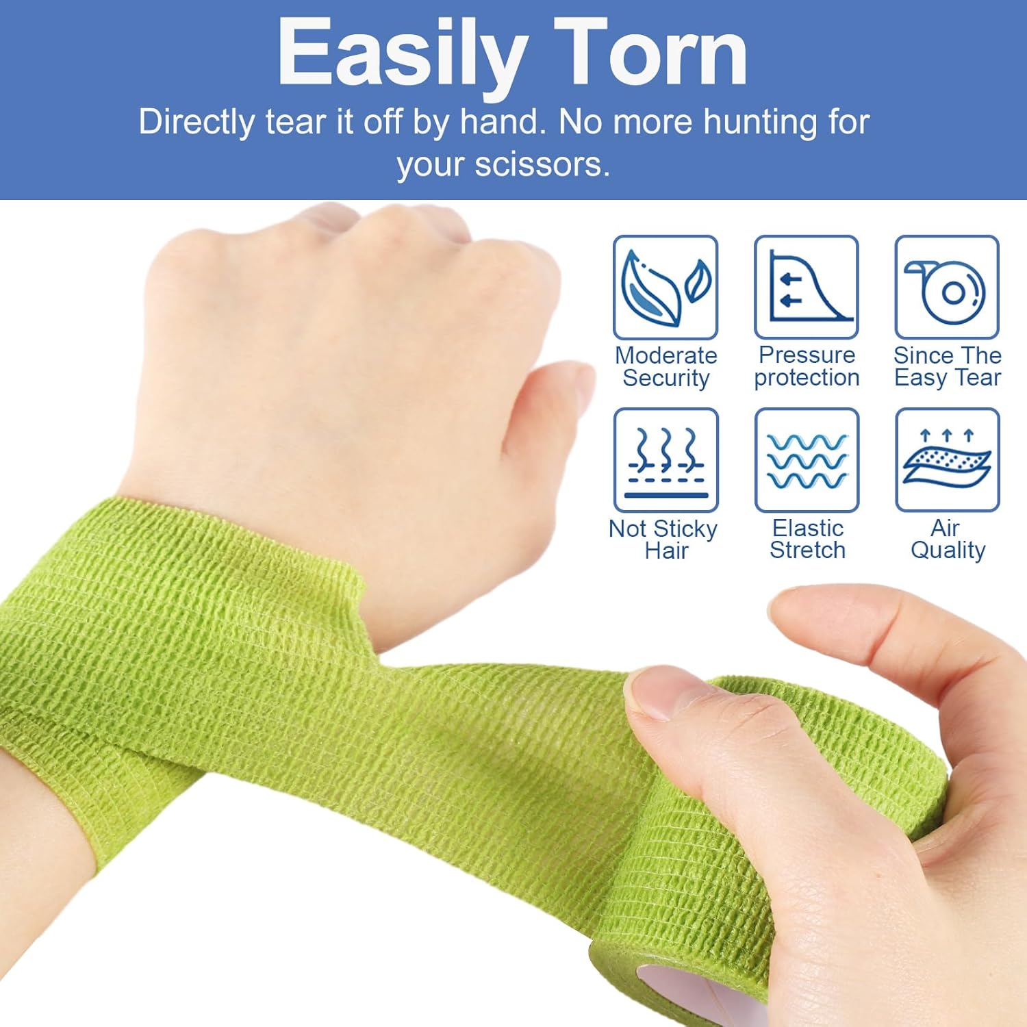 • 【Breathable & Water-Resistant】 Safe for sensitive skin and pet bandages, this cohesive bandage wrap resists water while reducing swelling. Hand-tearable, no scissors required