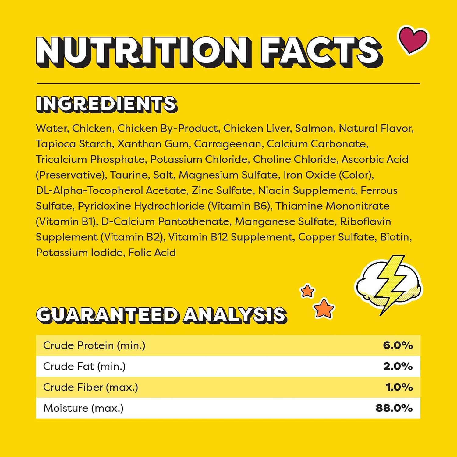 • Made with Real Chicken and Salmon: Your favorite feline will enjoy two irresistible flavors in one lickable spoon