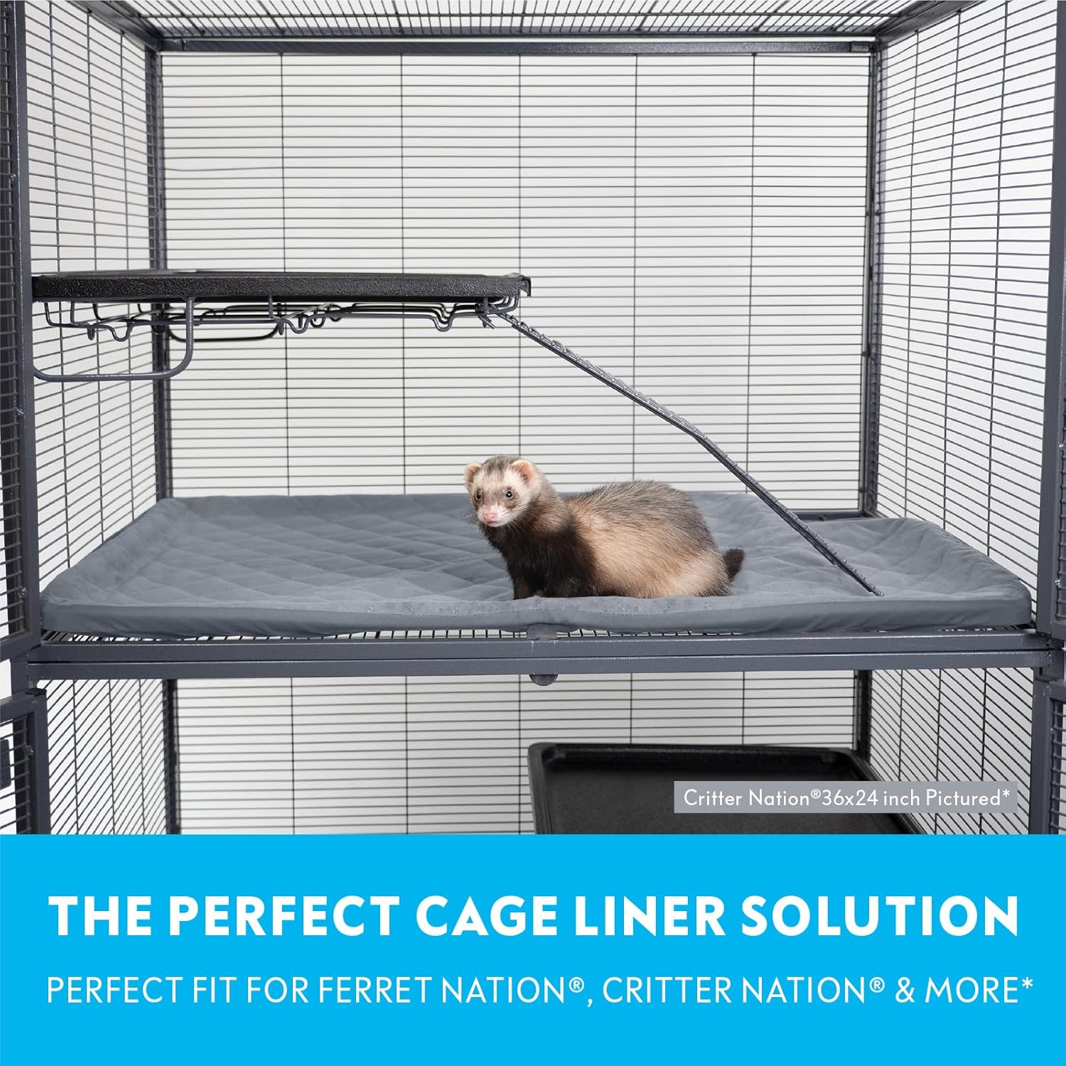 • PERFECT FIT: Designed specially for use with the top pan of the Ferret Nation and Critter Nation* cages and includes a cut-out for the ramp opening. A stretchy elastic bottom band makes the liner easy to put on and secure over the pan, and a flexible wide strap reinforces the liner for a perfectly tight fit.